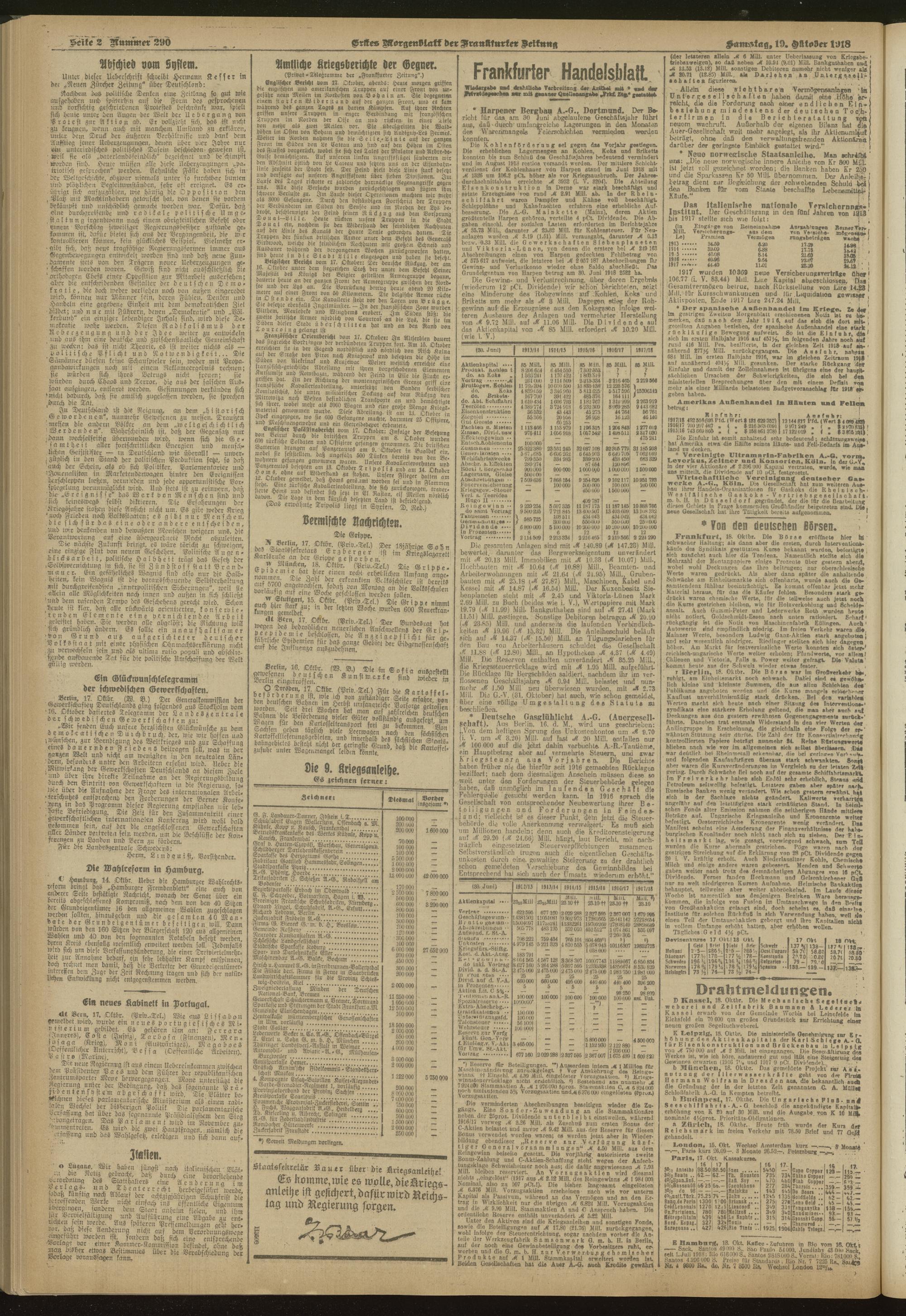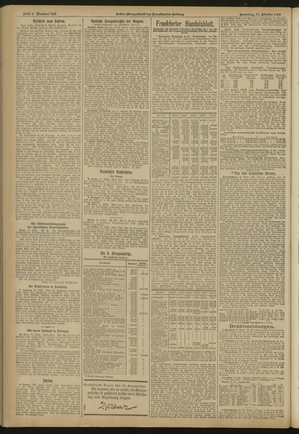 19.10.1918 = Nr. 290. Erstes Morgenblatt