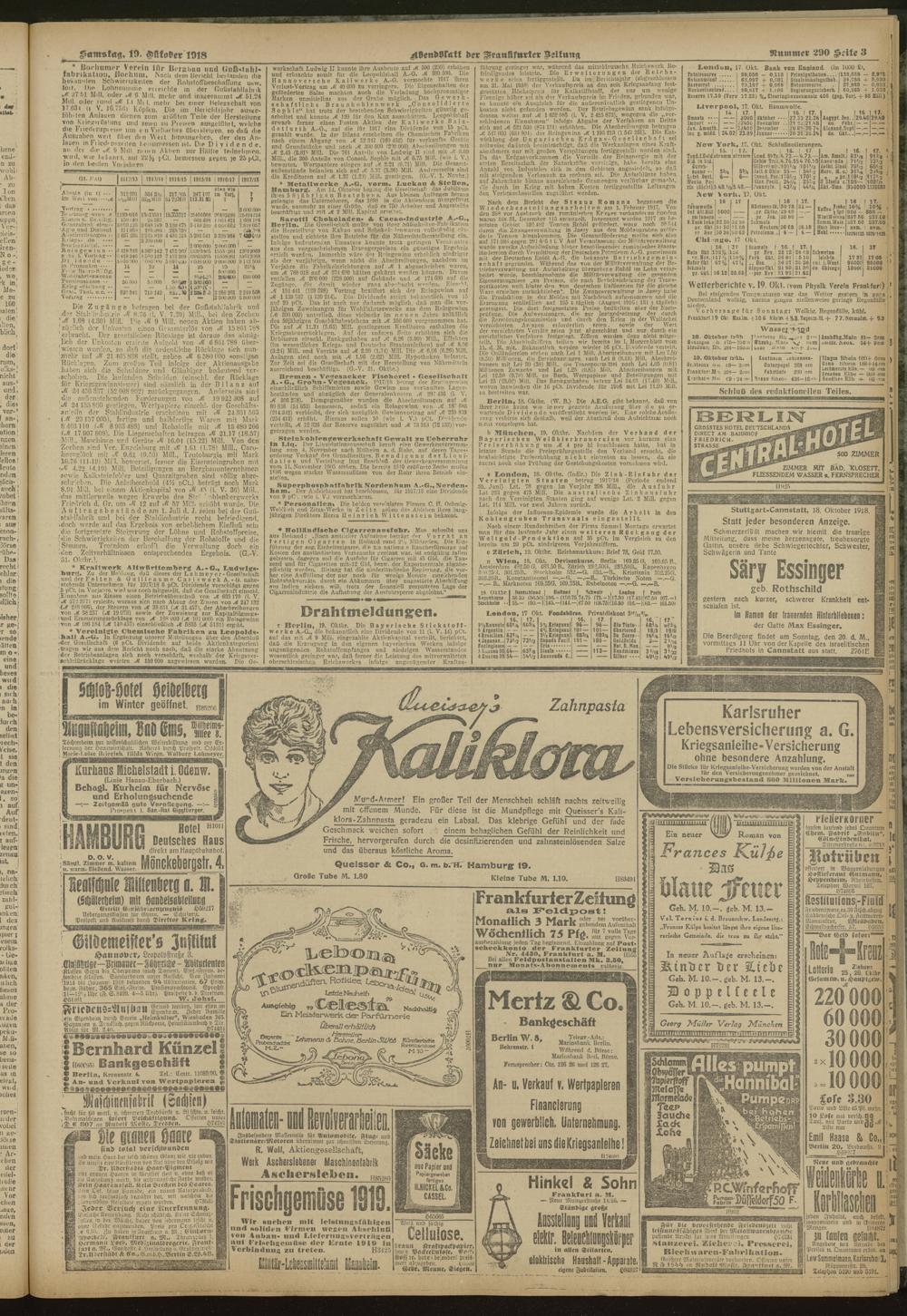 19.10.1918 = Nr. 290. Abendblatt