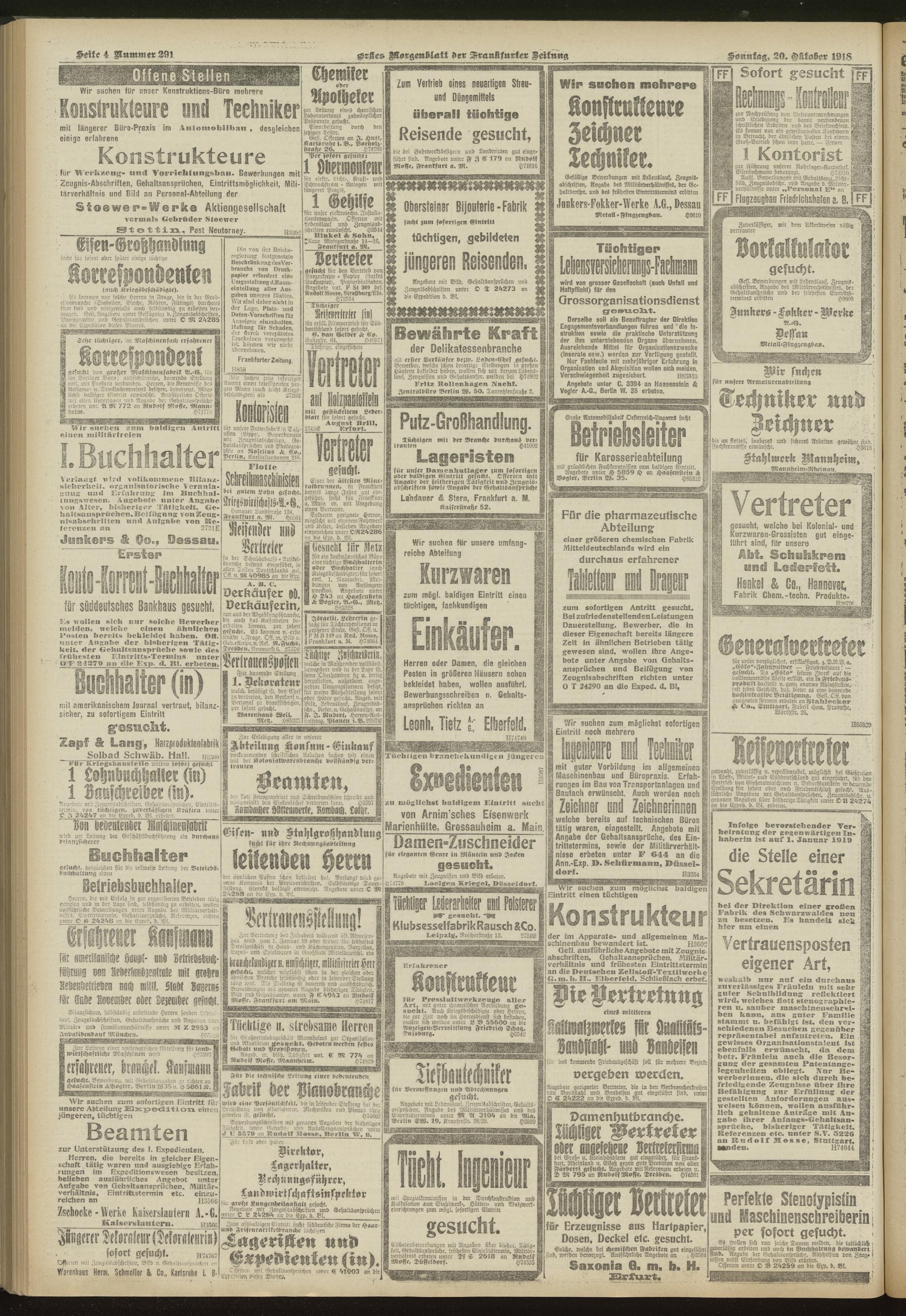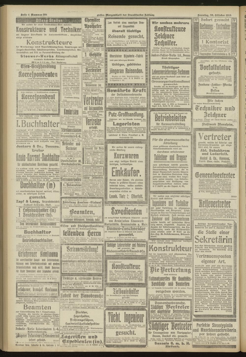 20.10.1918 = Nr. 291. Erstes Morgenblatt