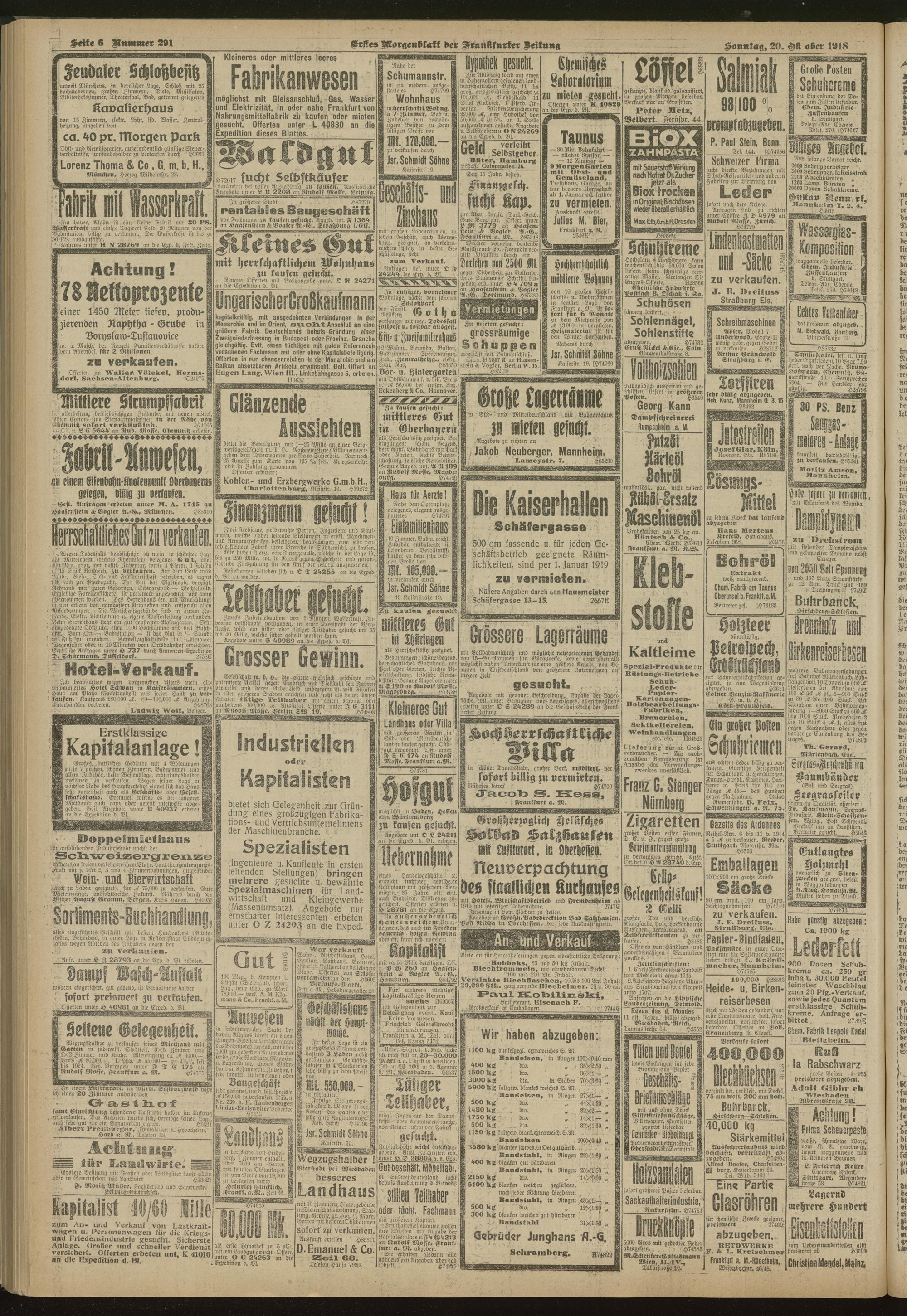 20.10.1918 = Nr. 291. Erstes Morgenblatt