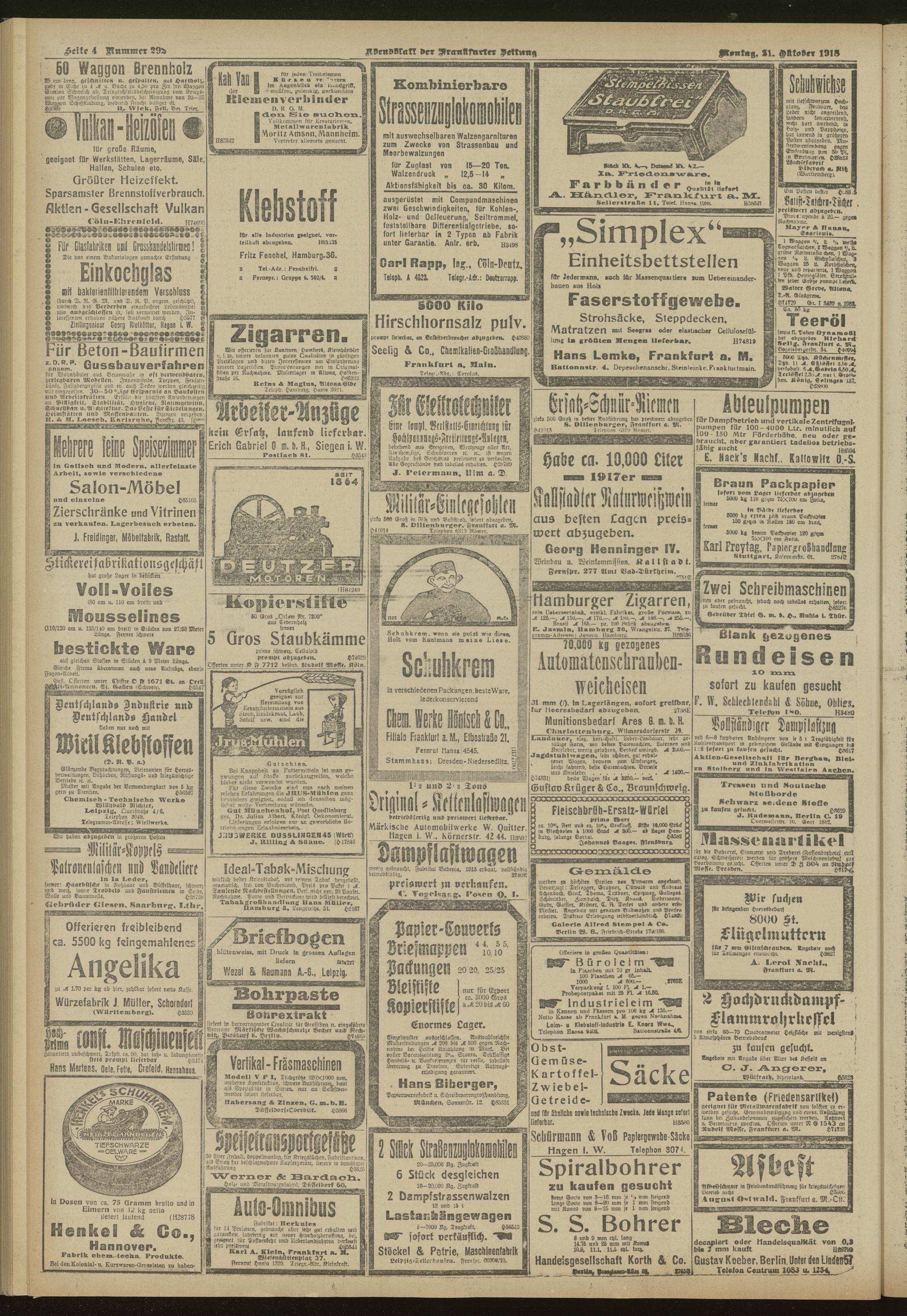 21.10.1918 = Nr. 292. Abendblatt