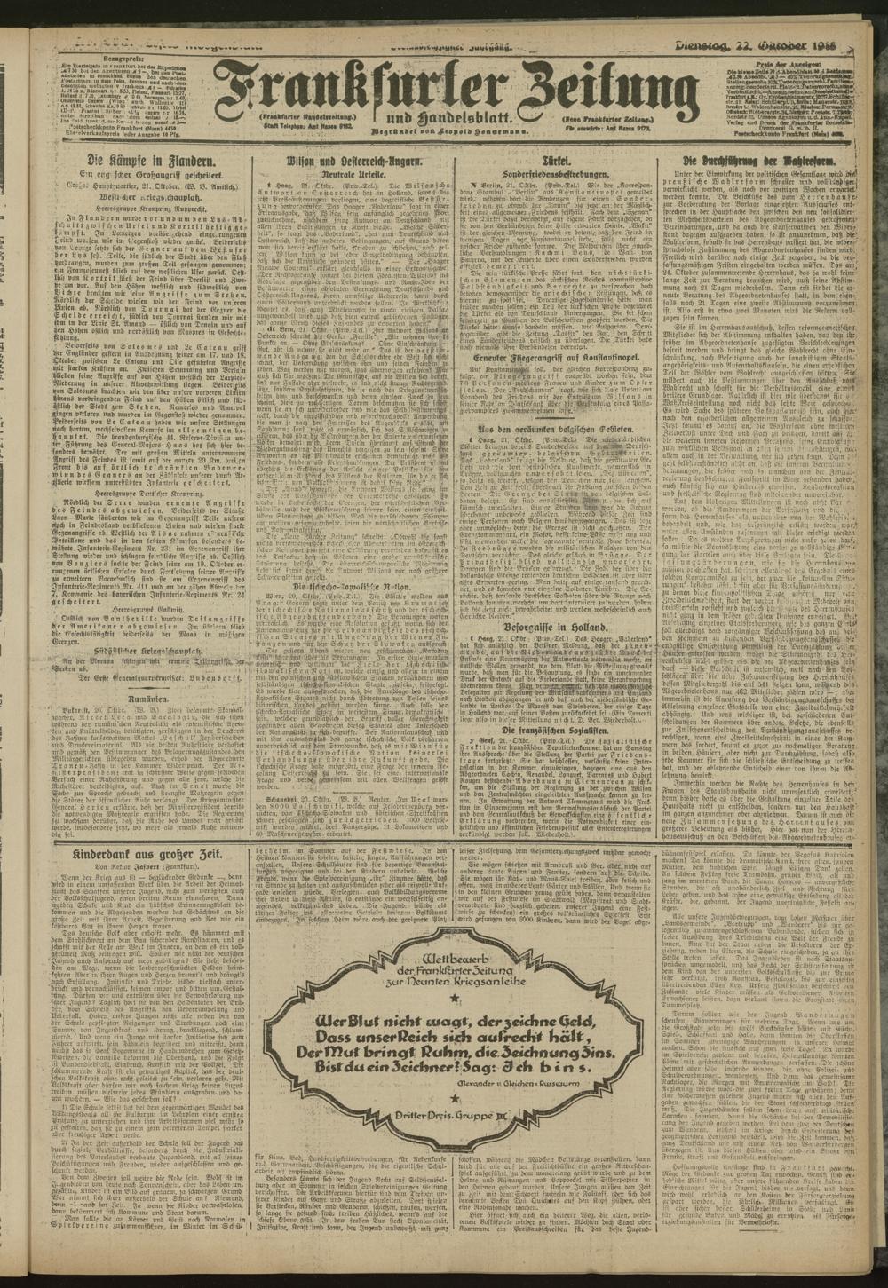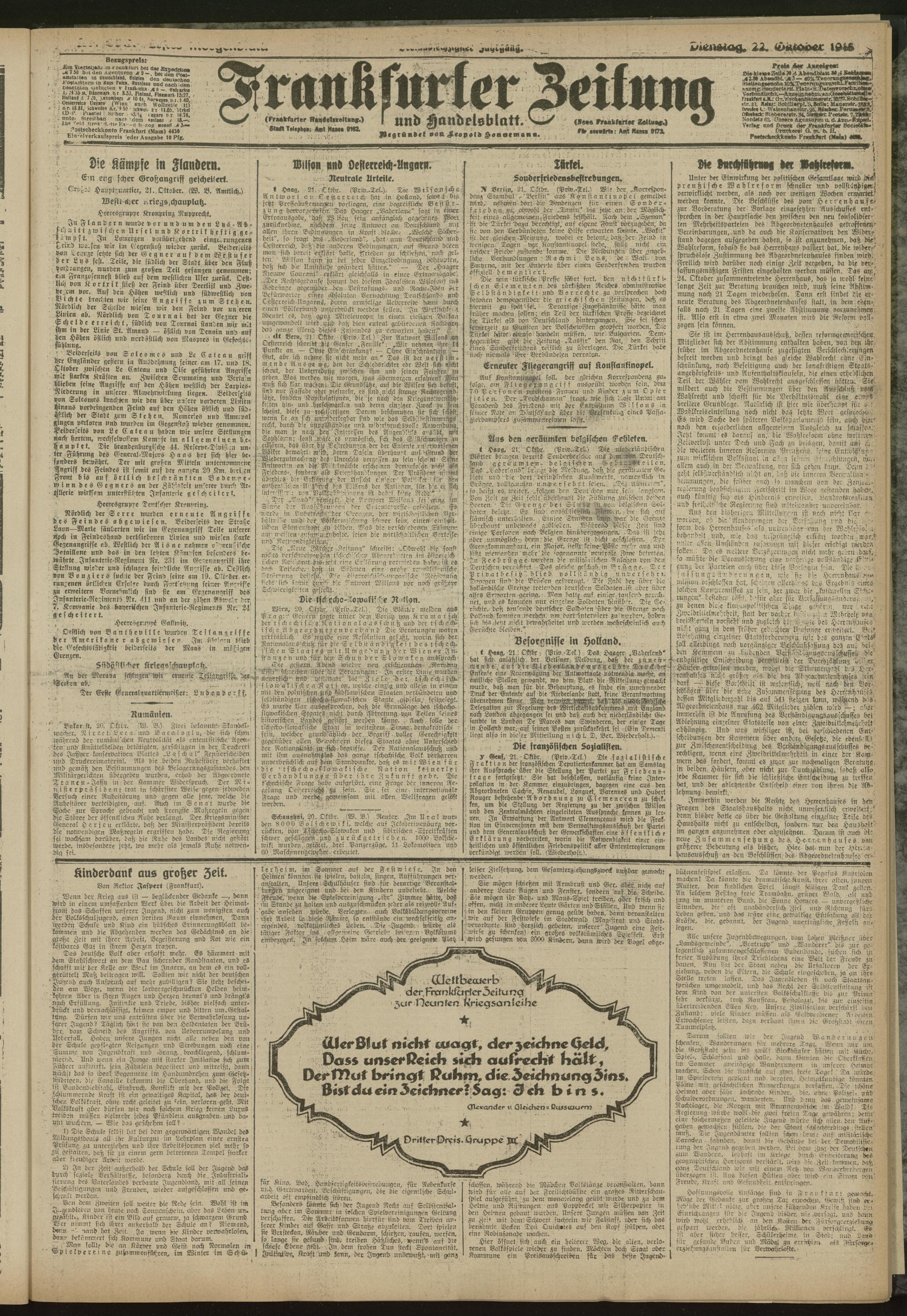 22.10.1918 = Nr. 293. Erstes Morgenblatt
