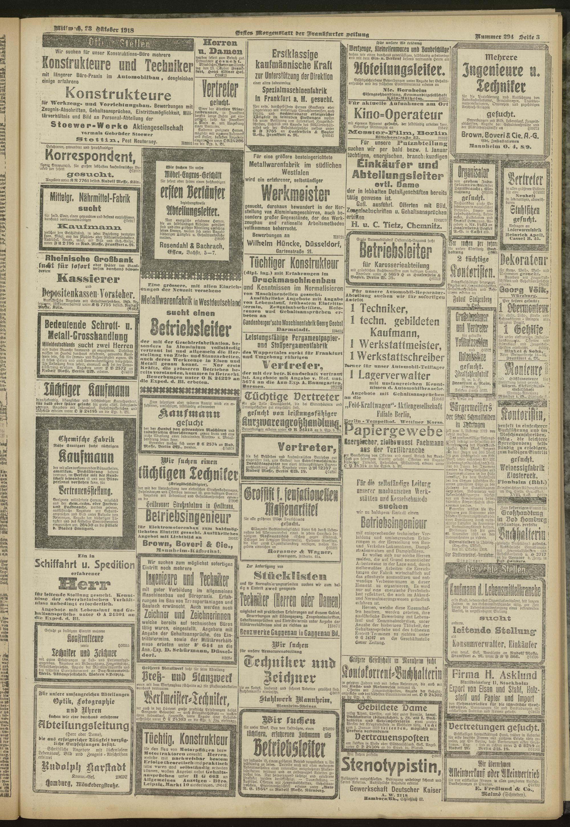 23.10.1918 = Nr. 294. Erstes Morgenblatt