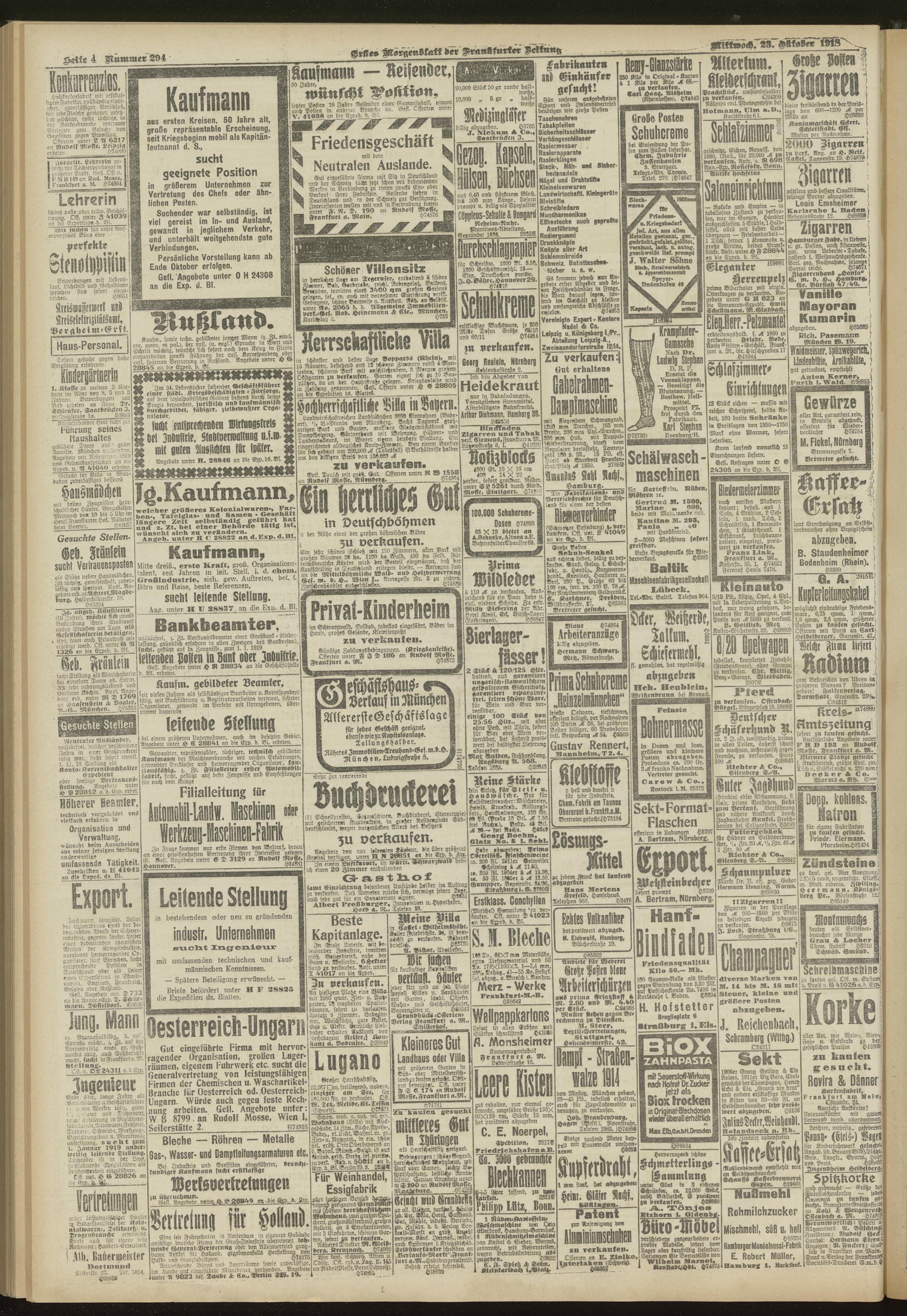 23.10.1918 = Nr. 294. Erstes Morgenblatt