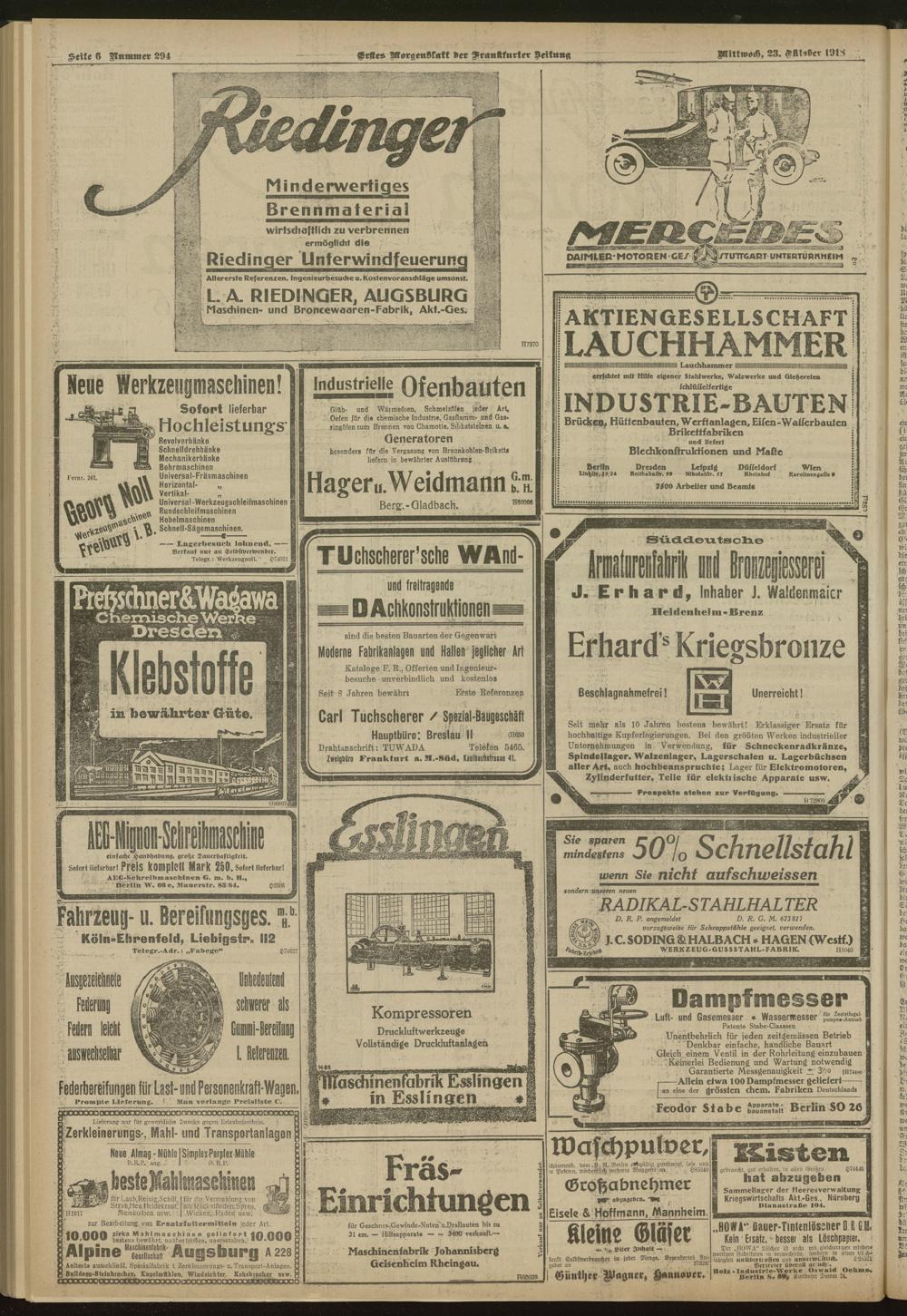 23.10.1918 = Nr. 294. Erstes Morgenblatt