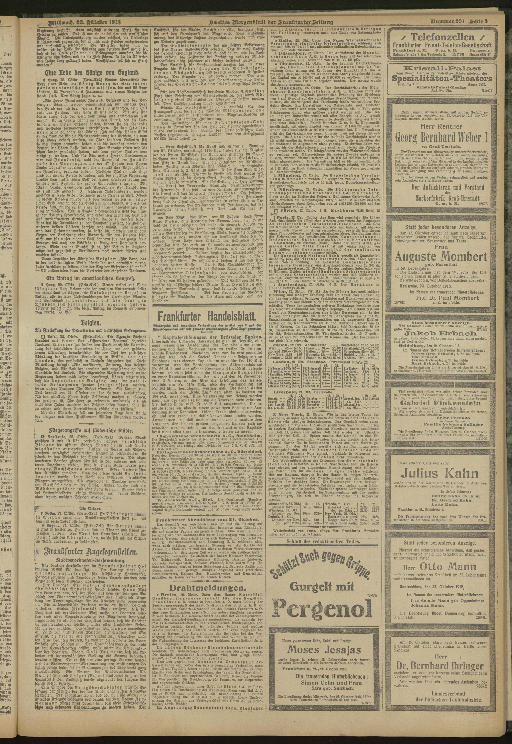 23.10.1918 = Nr. 294. Zweites Morgenblatt