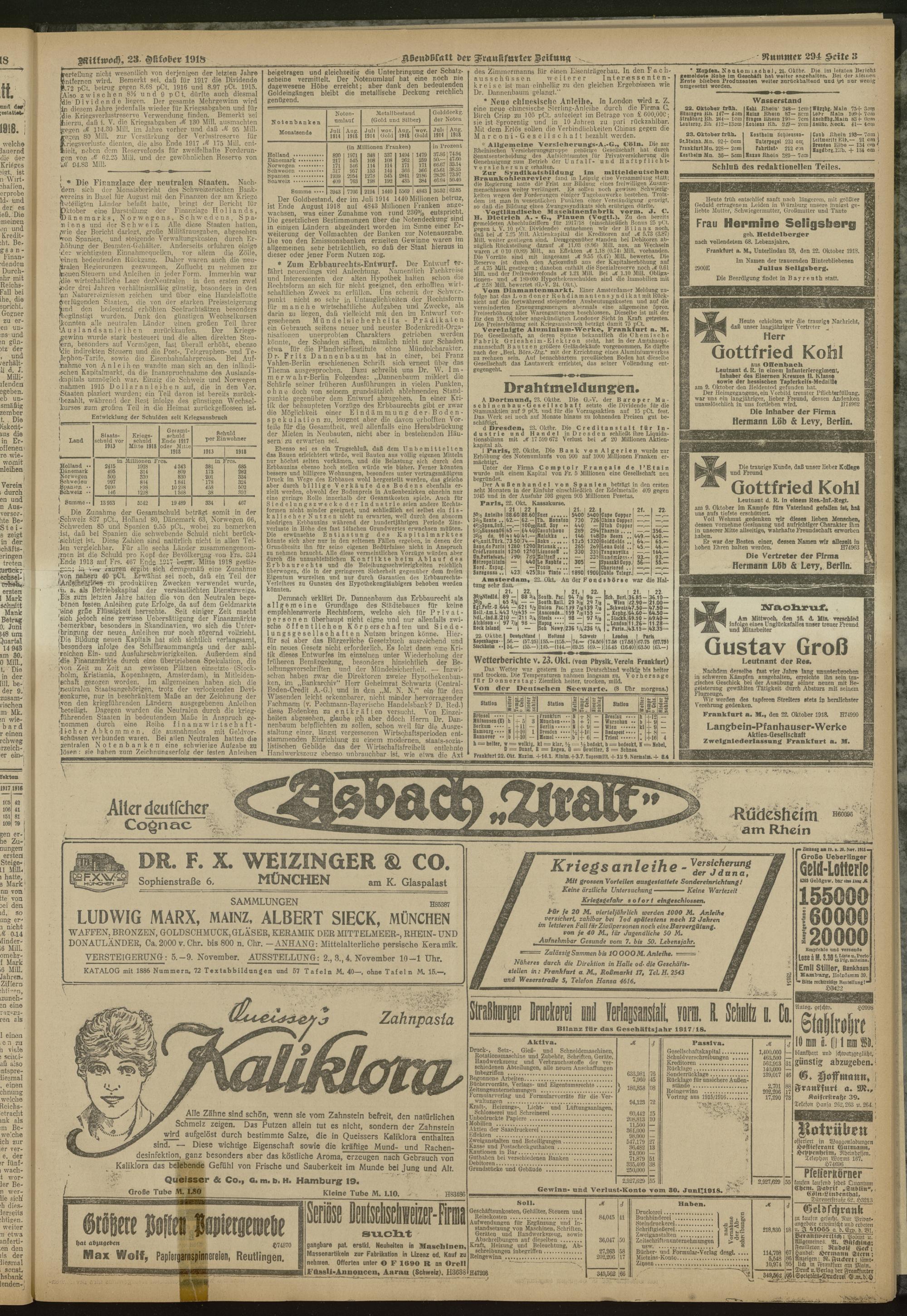 23.10.1918 = Nr. 294. Abendblatt