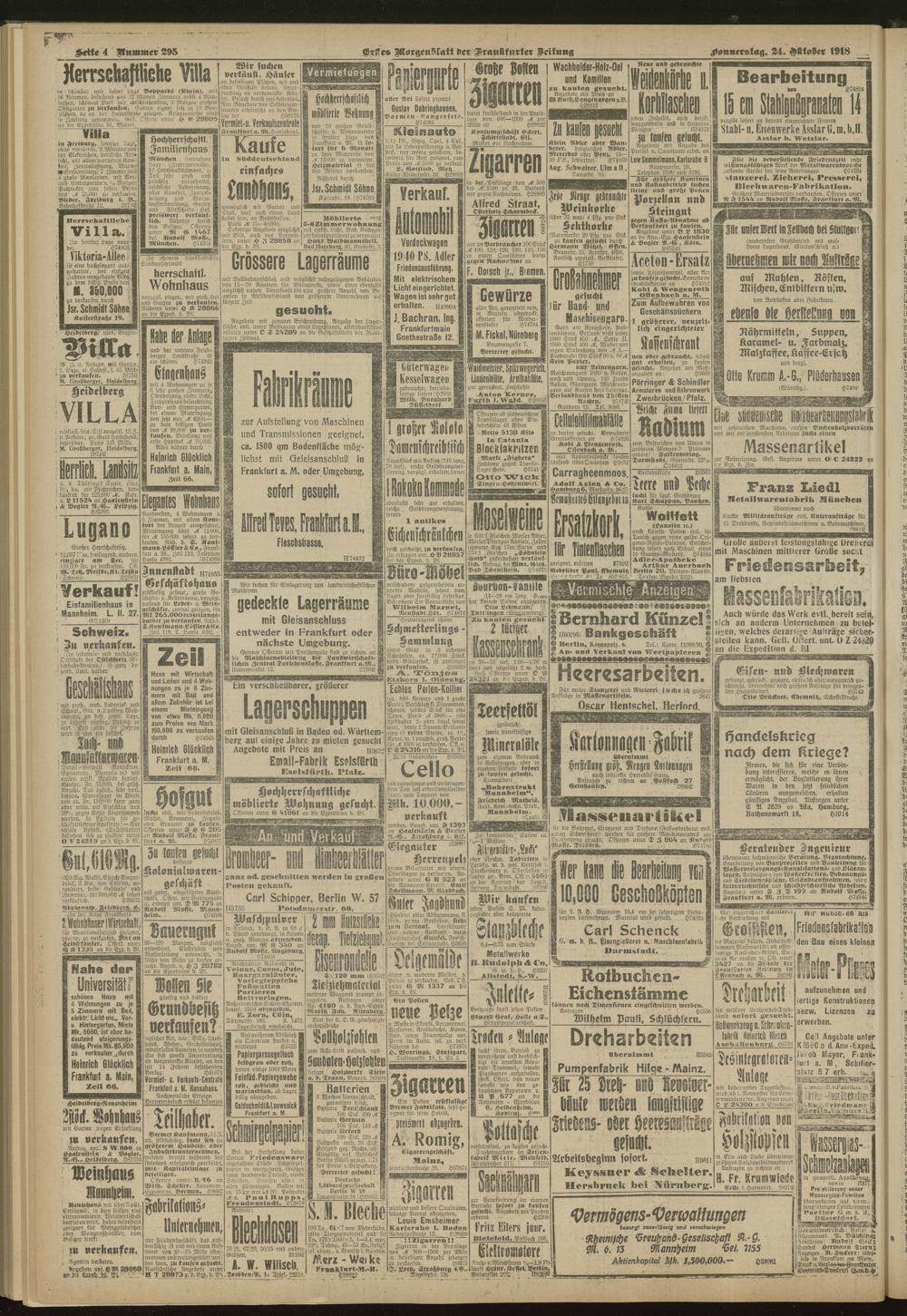 24.10.1918 = Nr. 295. Erstes Morgenblatt