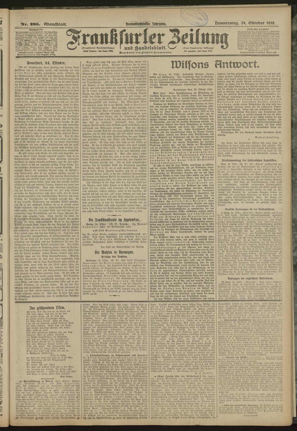 24.10.1918 = Nr. 295. Abendblatt