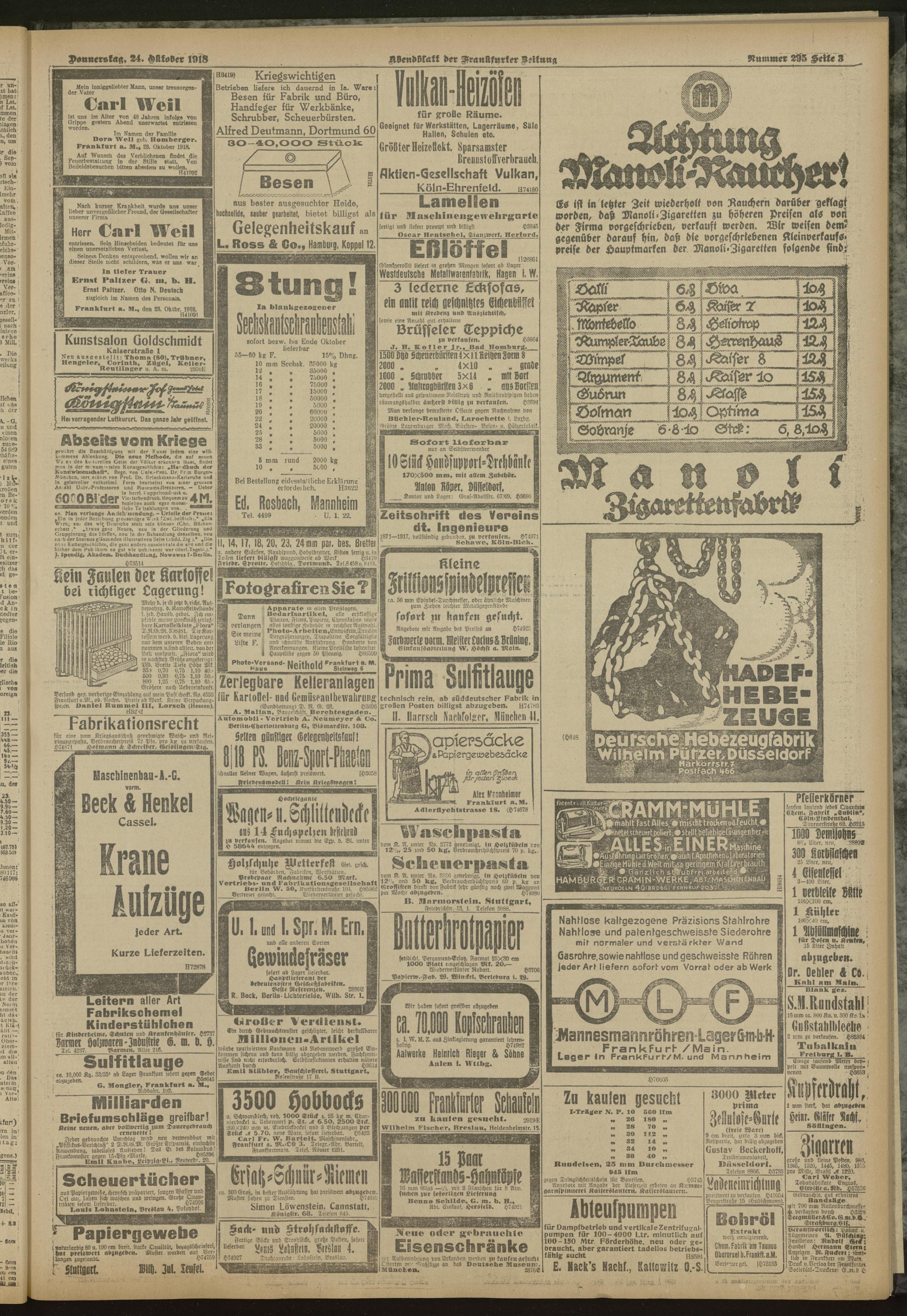24.10.1918 = Nr. 295. Abendblatt