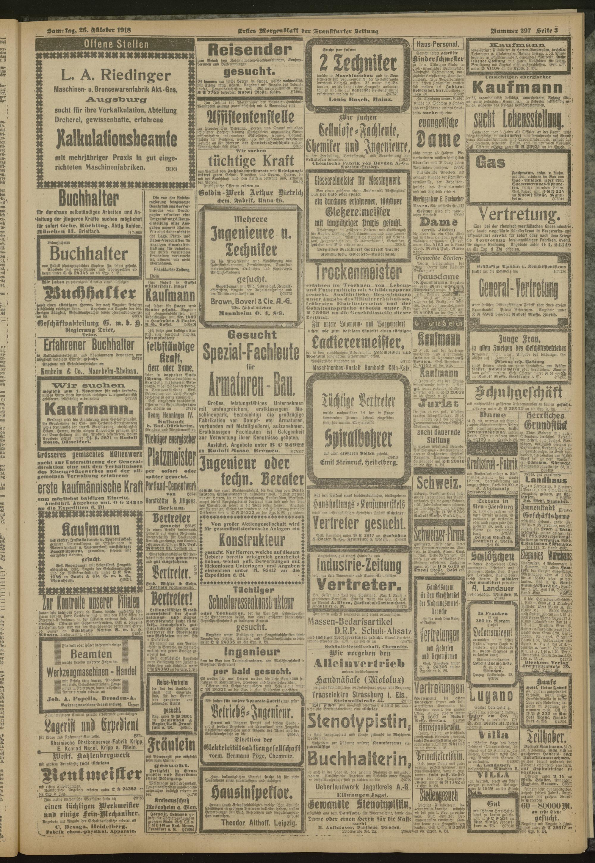 26.10.1918 = Nr. 297. Erstes Morgenblatt