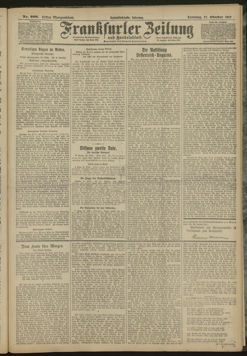27.10.1918 = Nr. 298. Erstes Morgenblatt