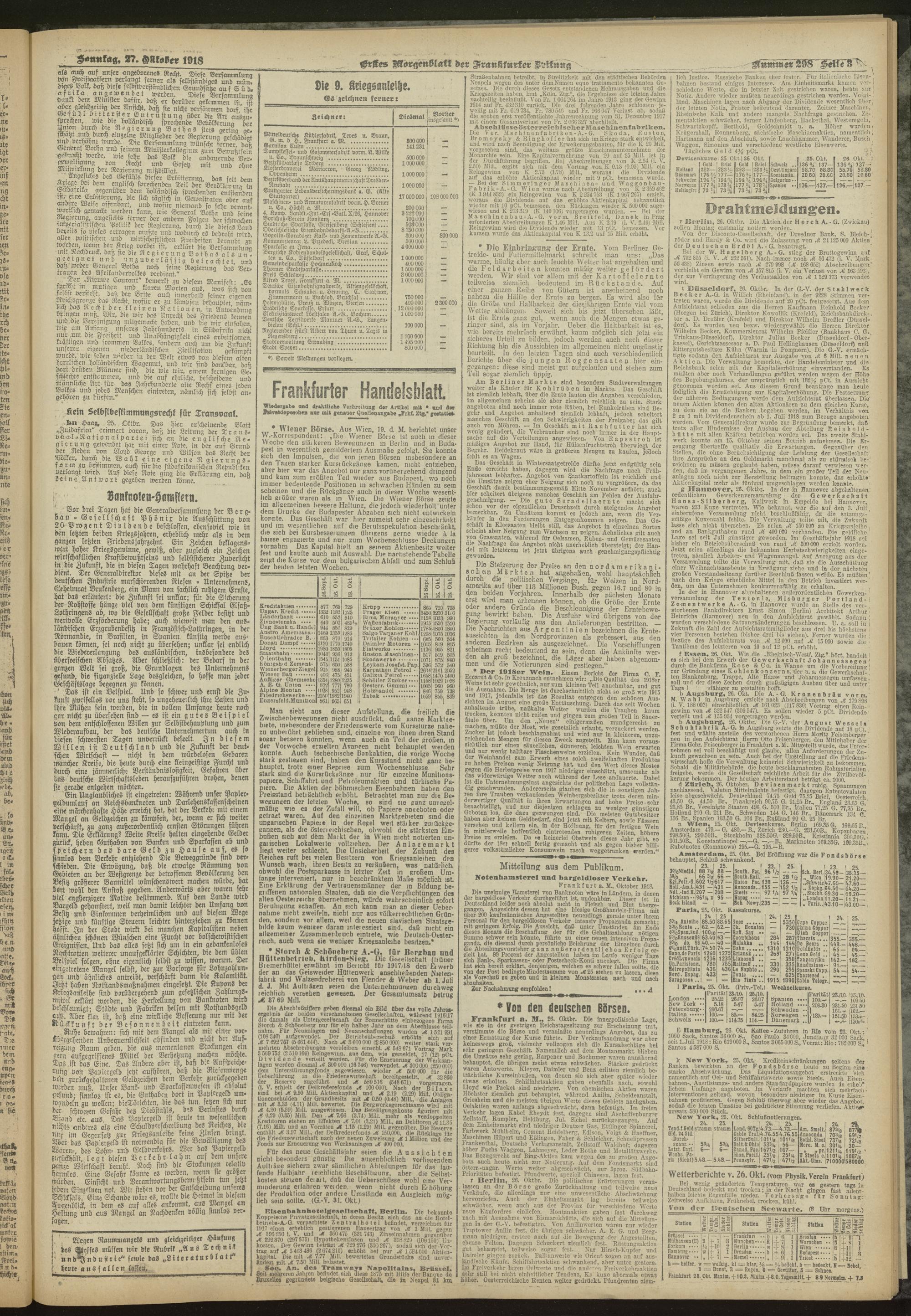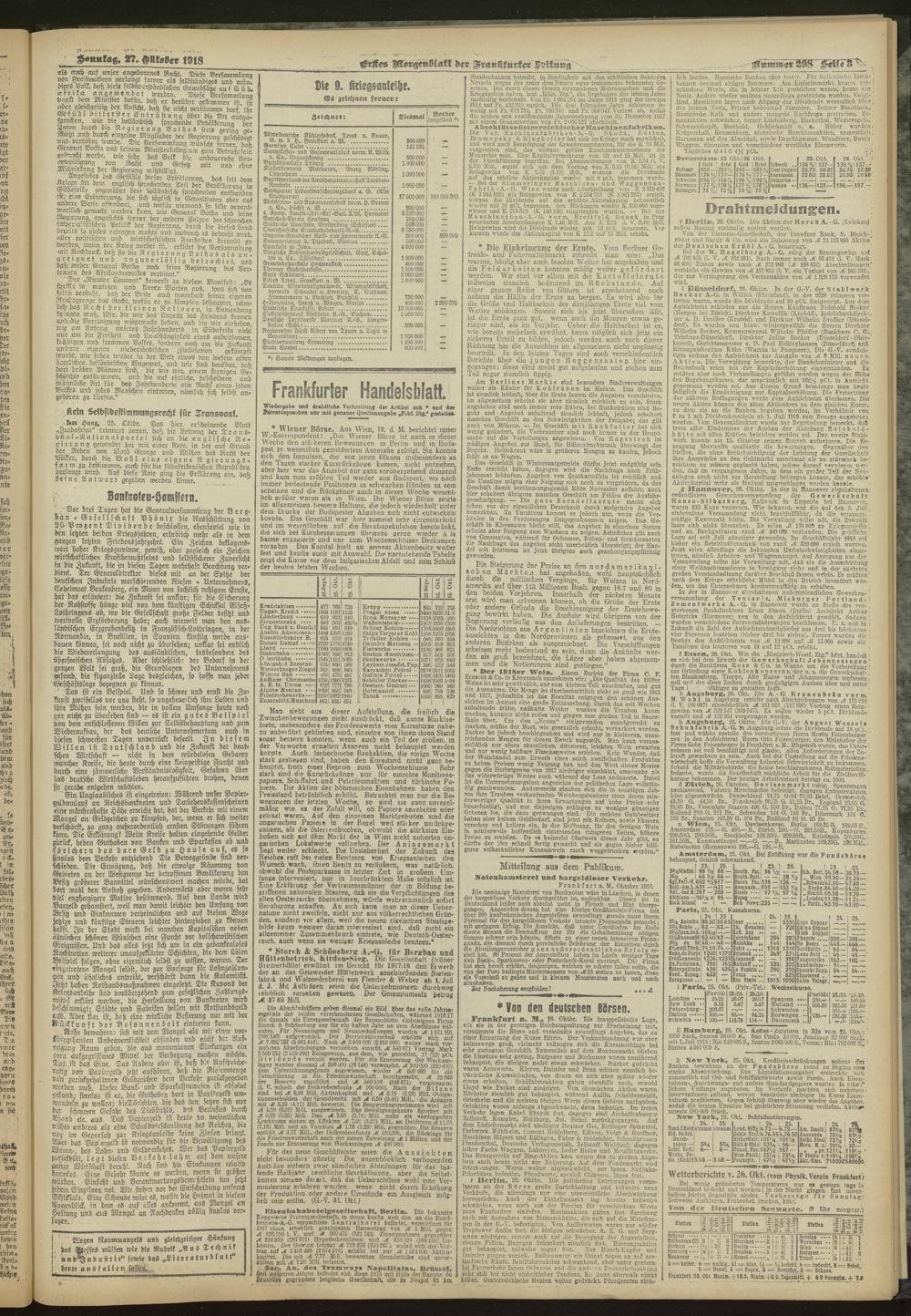 27.10.1918 = Nr. 298. Erstes Morgenblatt