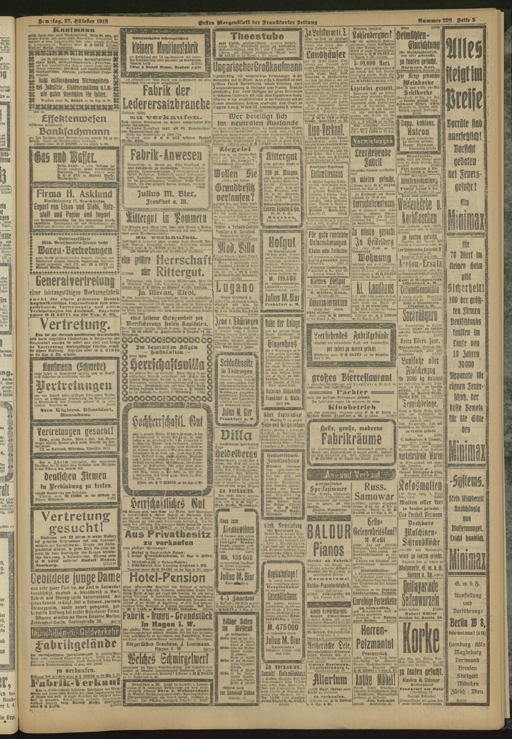 27.10.1918 = Nr. 298. Erstes Morgenblatt