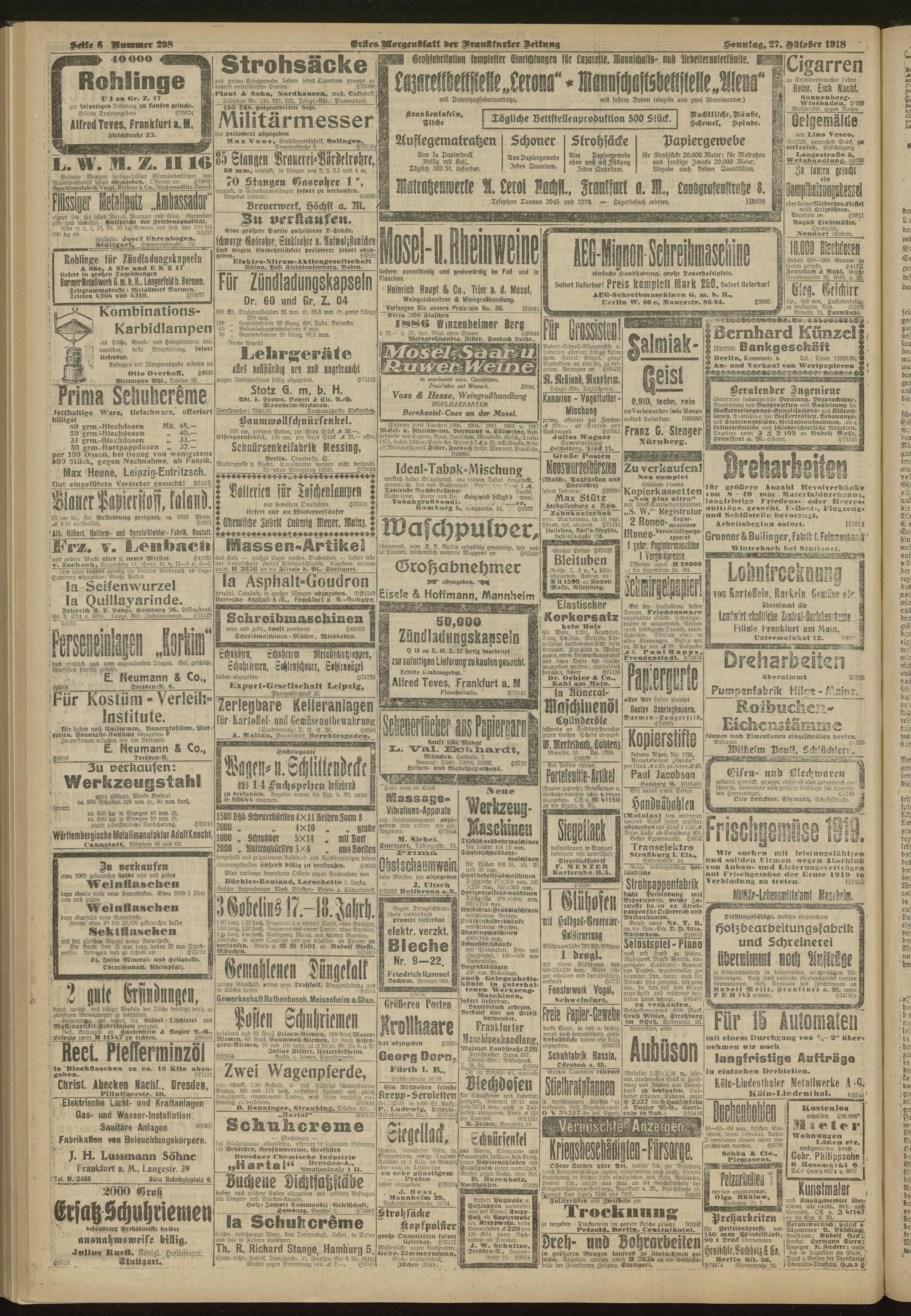 27.10.1918 = Nr. 298. Erstes Morgenblatt