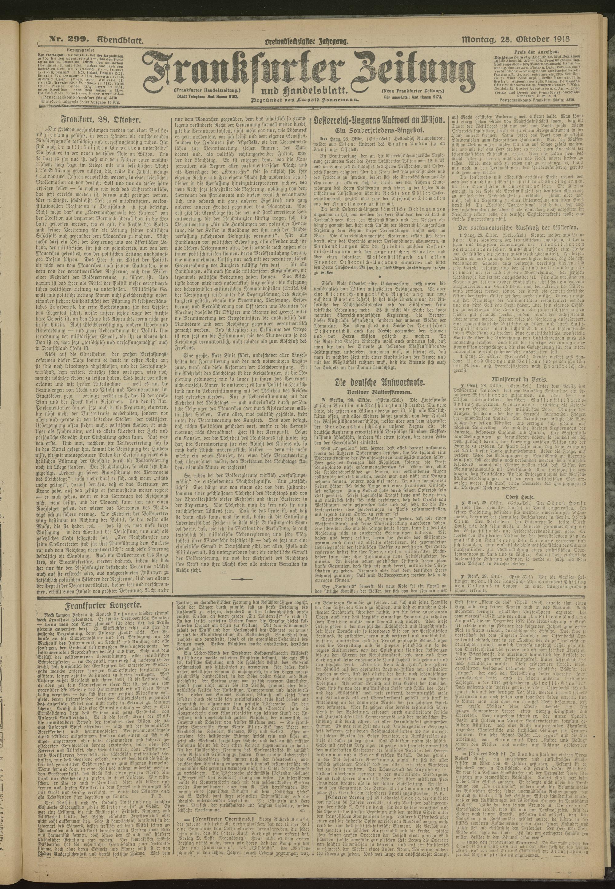 28.10.1918 = Nr. 299. Abendblatt
