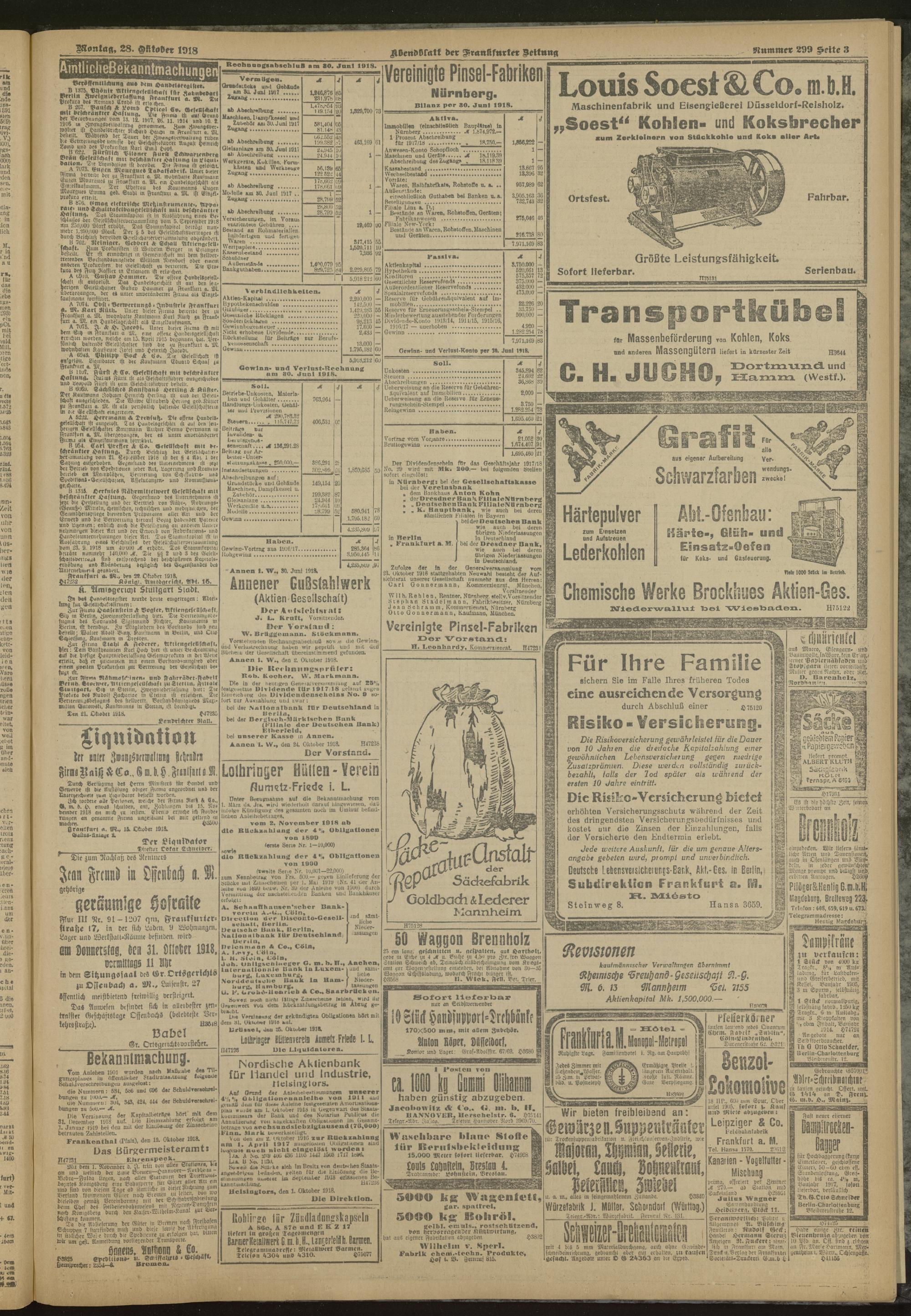 28.10.1918 = Nr. 299. Abendblatt