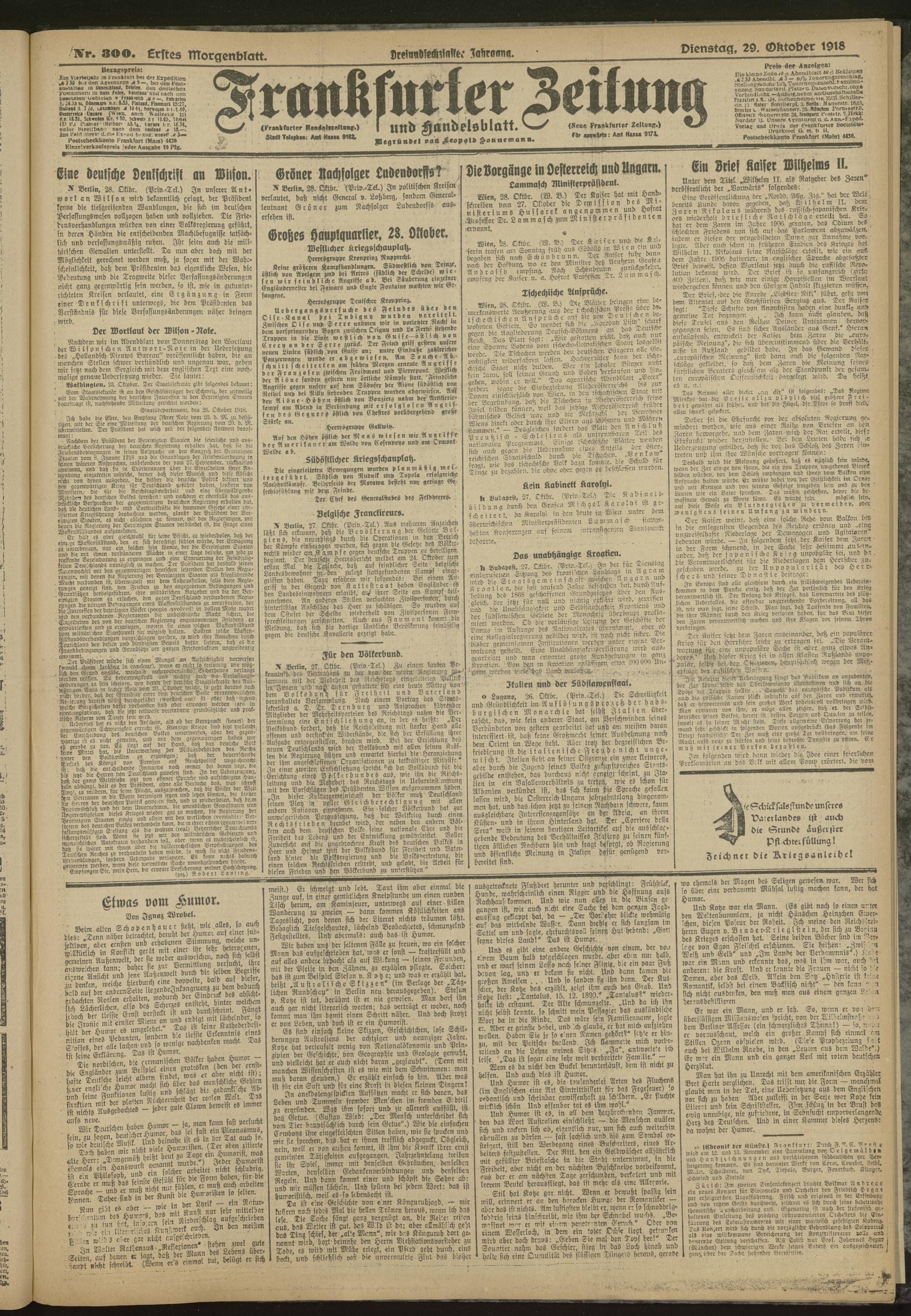 29.10.1918 = Nr. 300. Erstes Morgenblatt