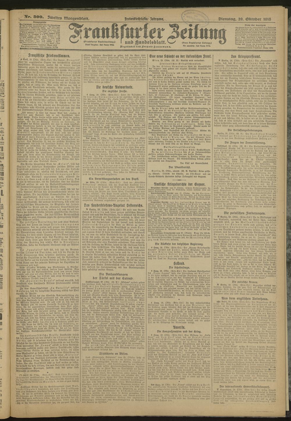 29.10.1918 = Nr. 300. Zweites Morgenblatt