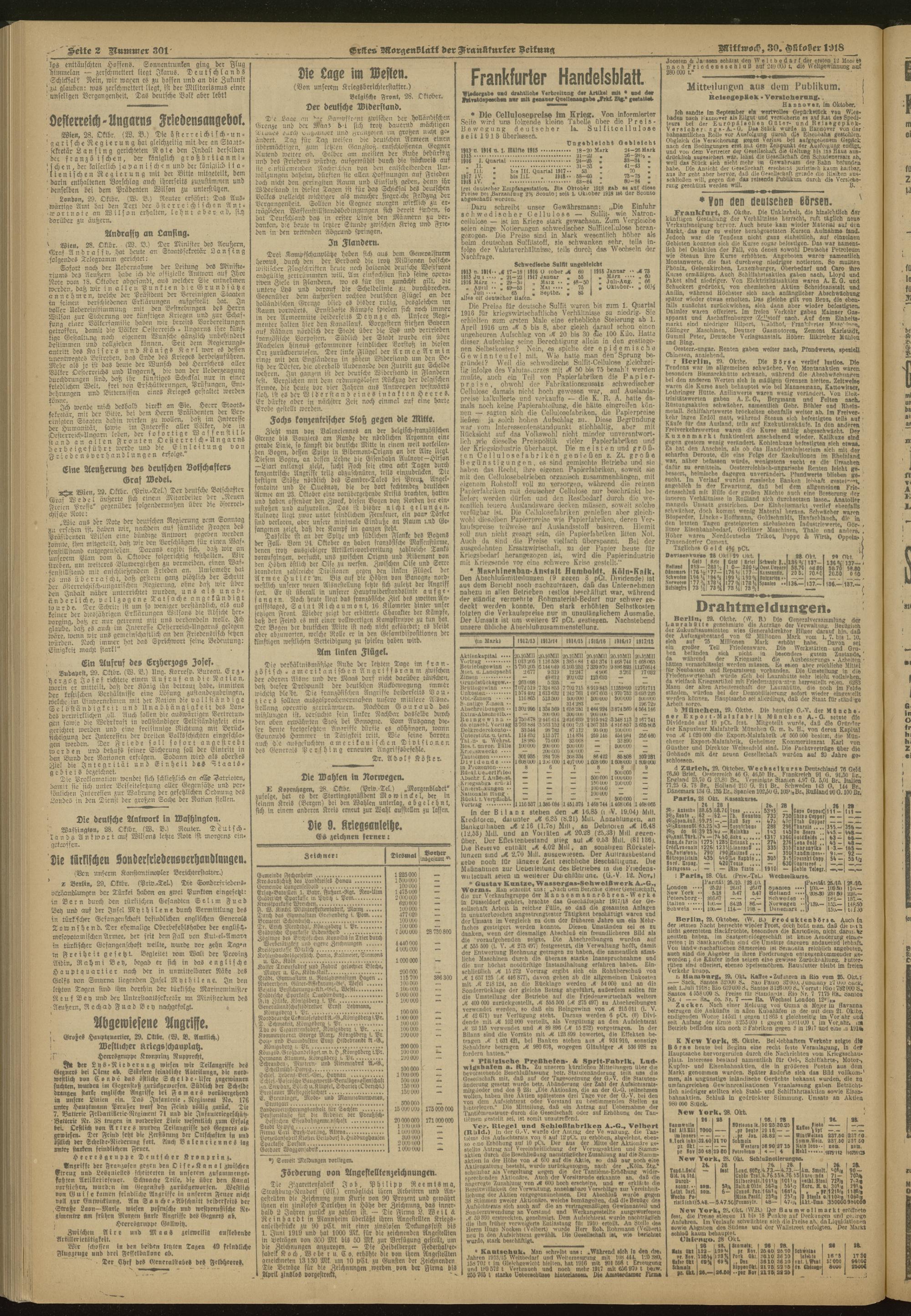 30.10.1918 = Nr. 301. Erstes Morgenblatt