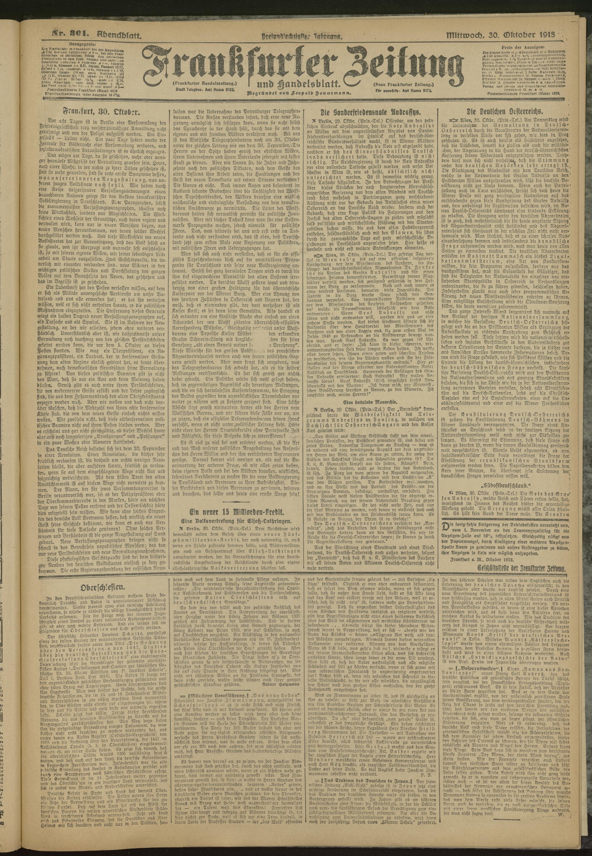 30.10.1918 = Nr. 301. Abendblatt