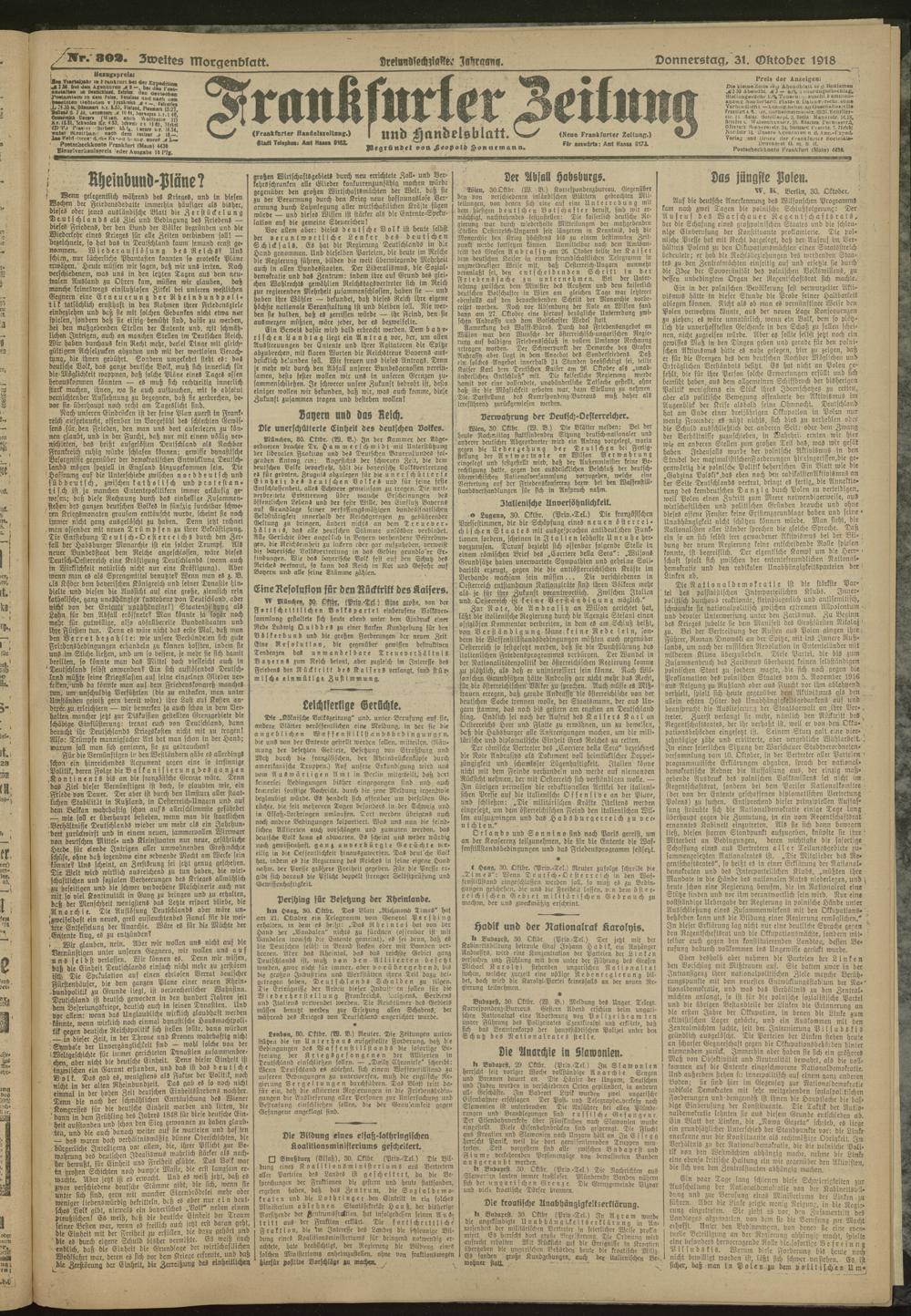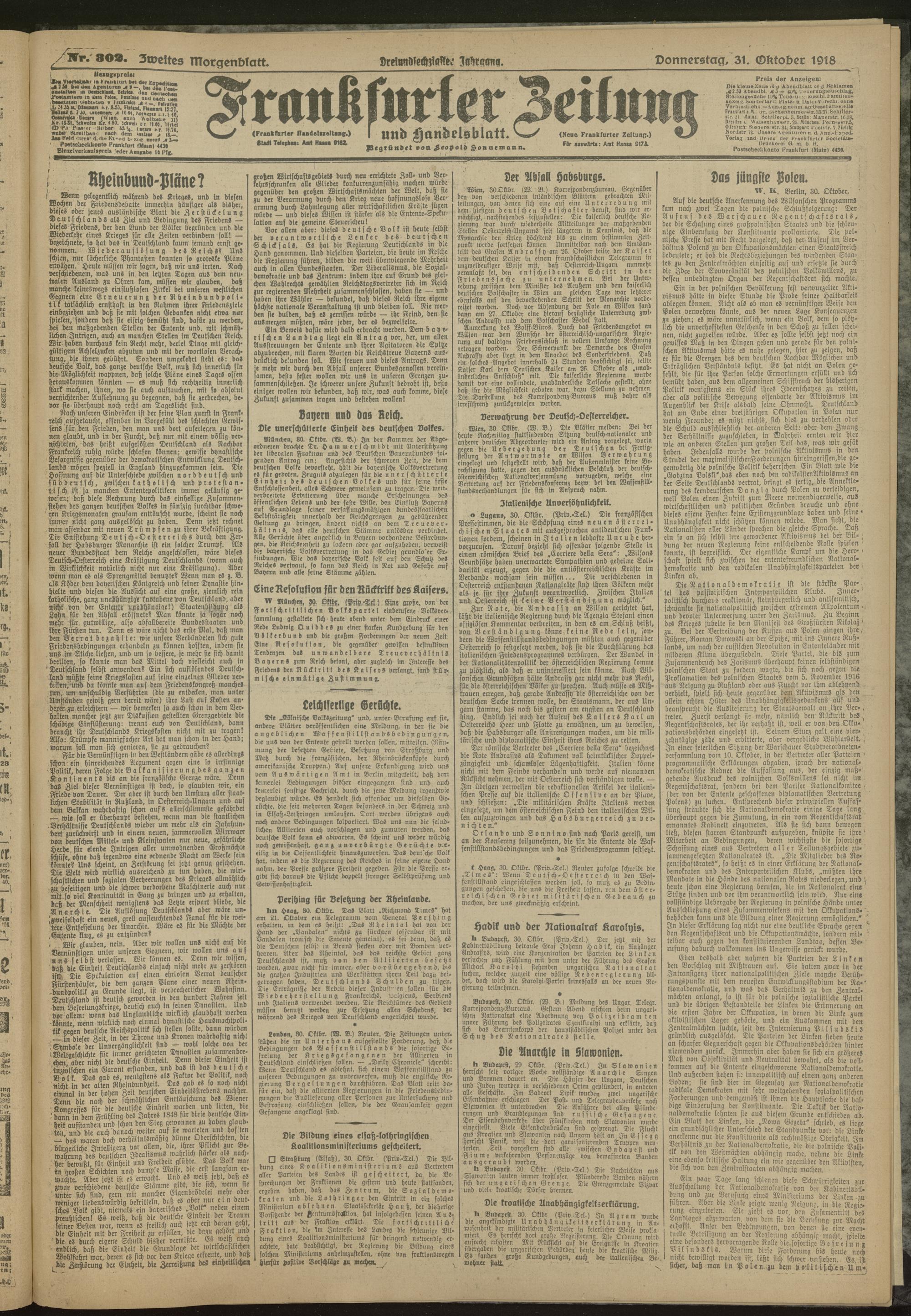 31.10.1918 = Nr. 302. Zweites Morgenblatt