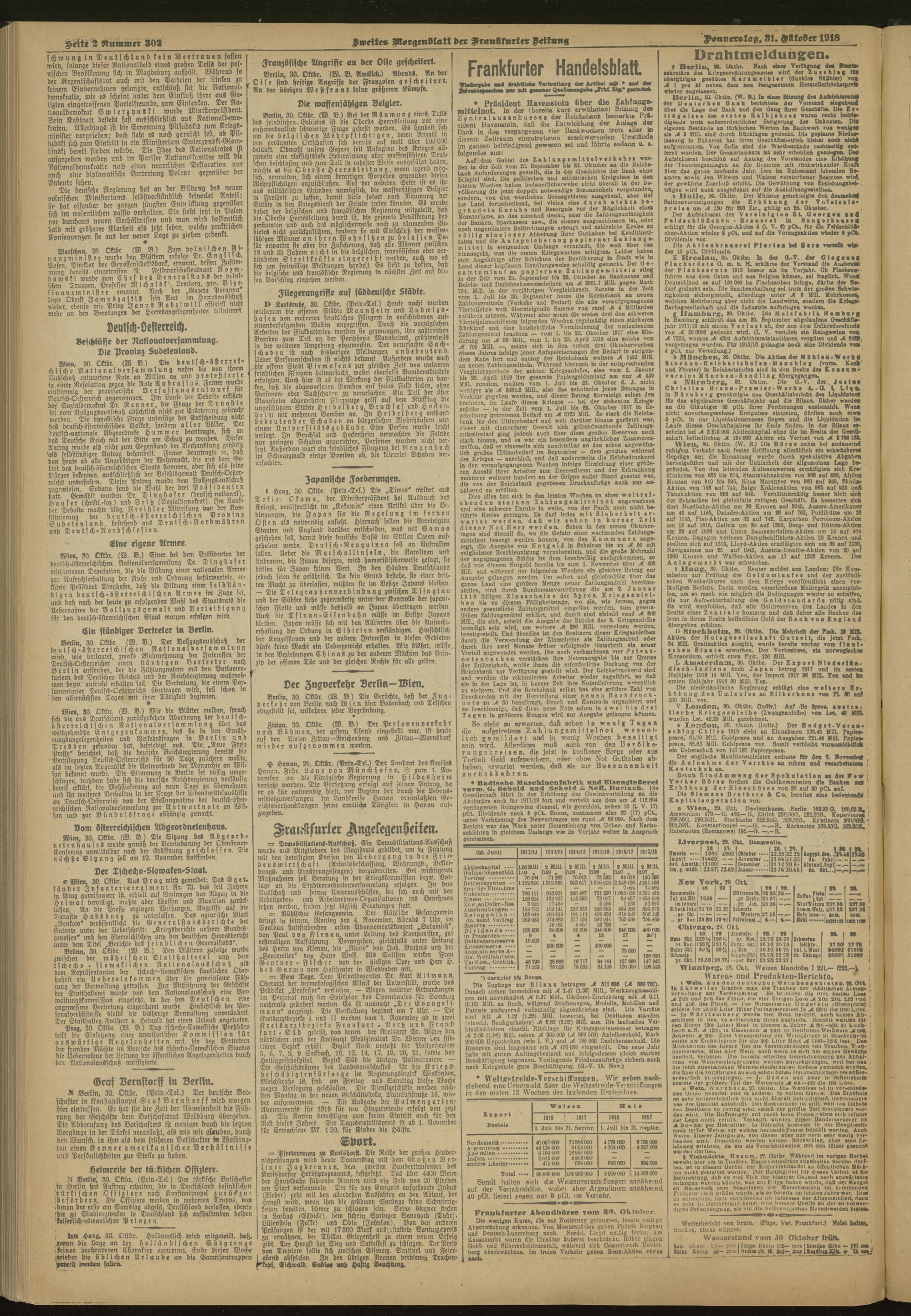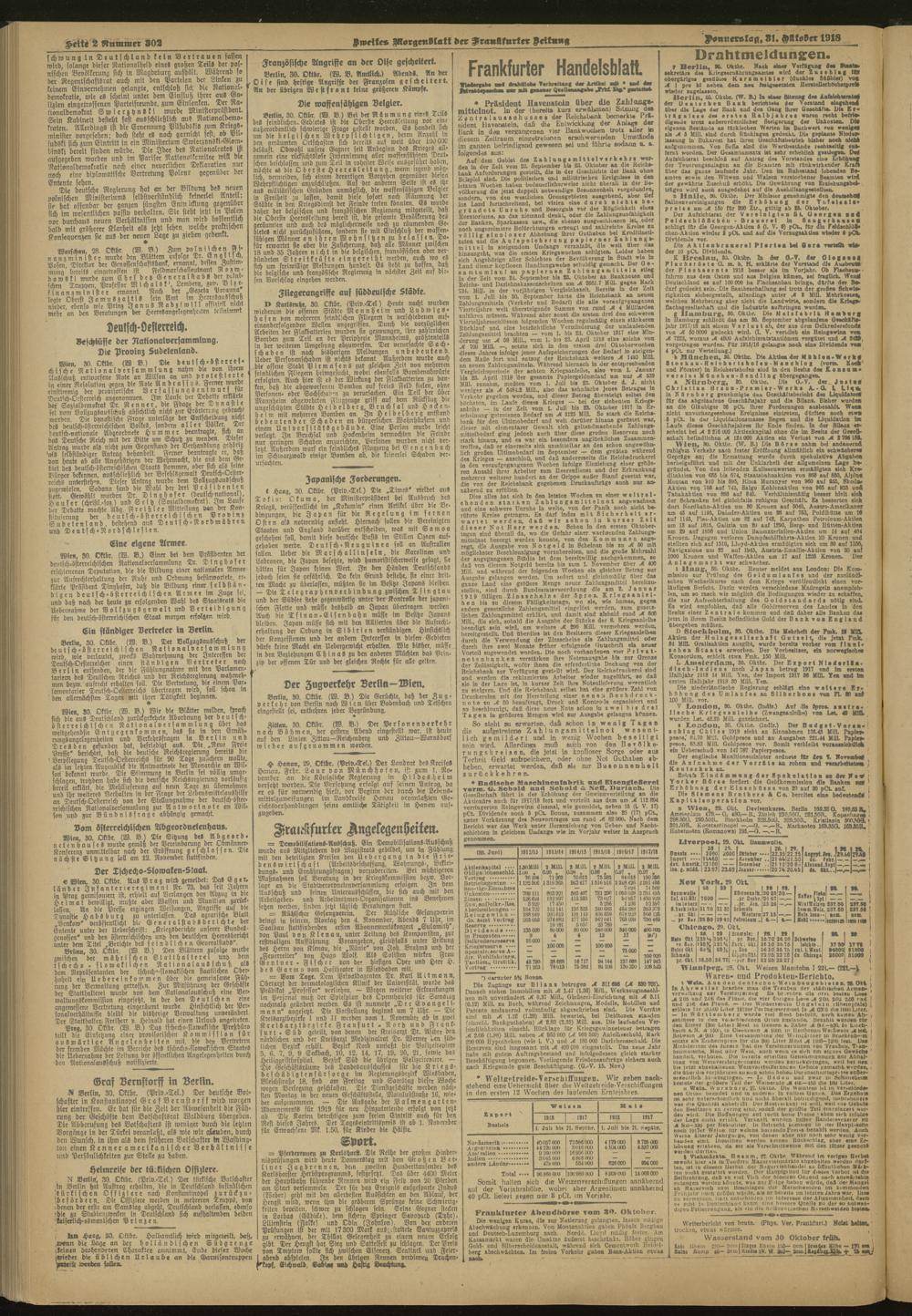 31.10.1918 = Nr. 302. Zweites Morgenblatt