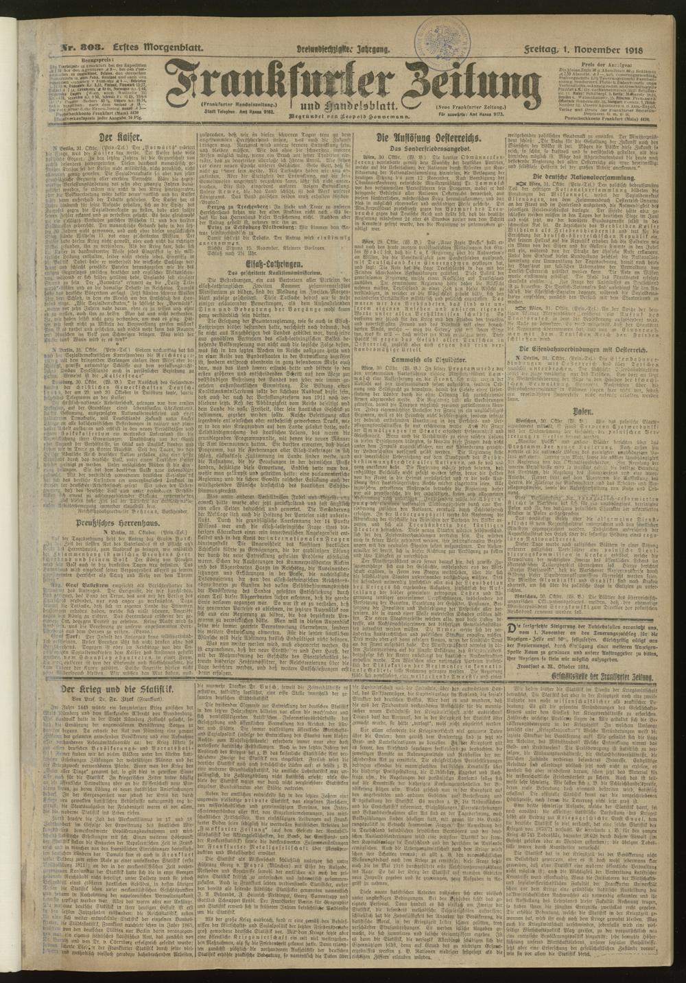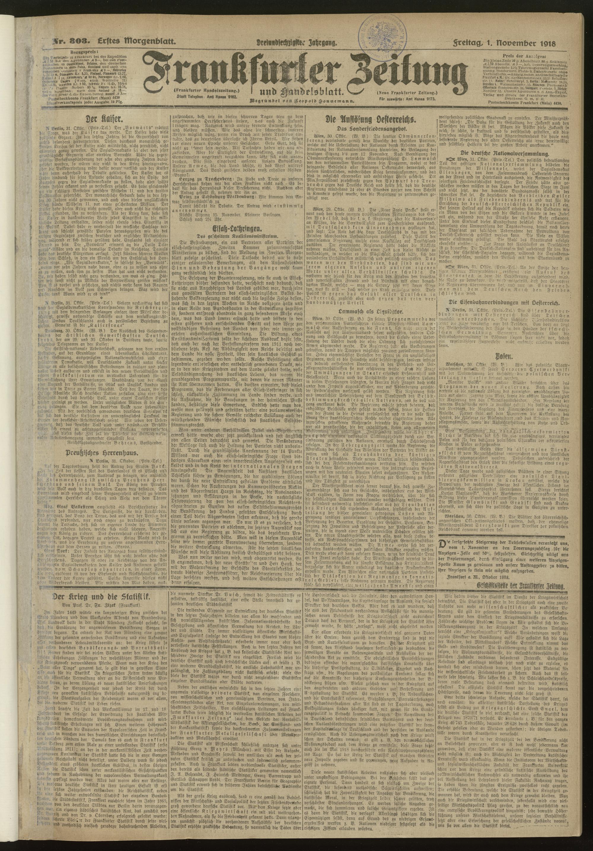 01.11.1918 = Nr. 303 Erstes Morgenblatt