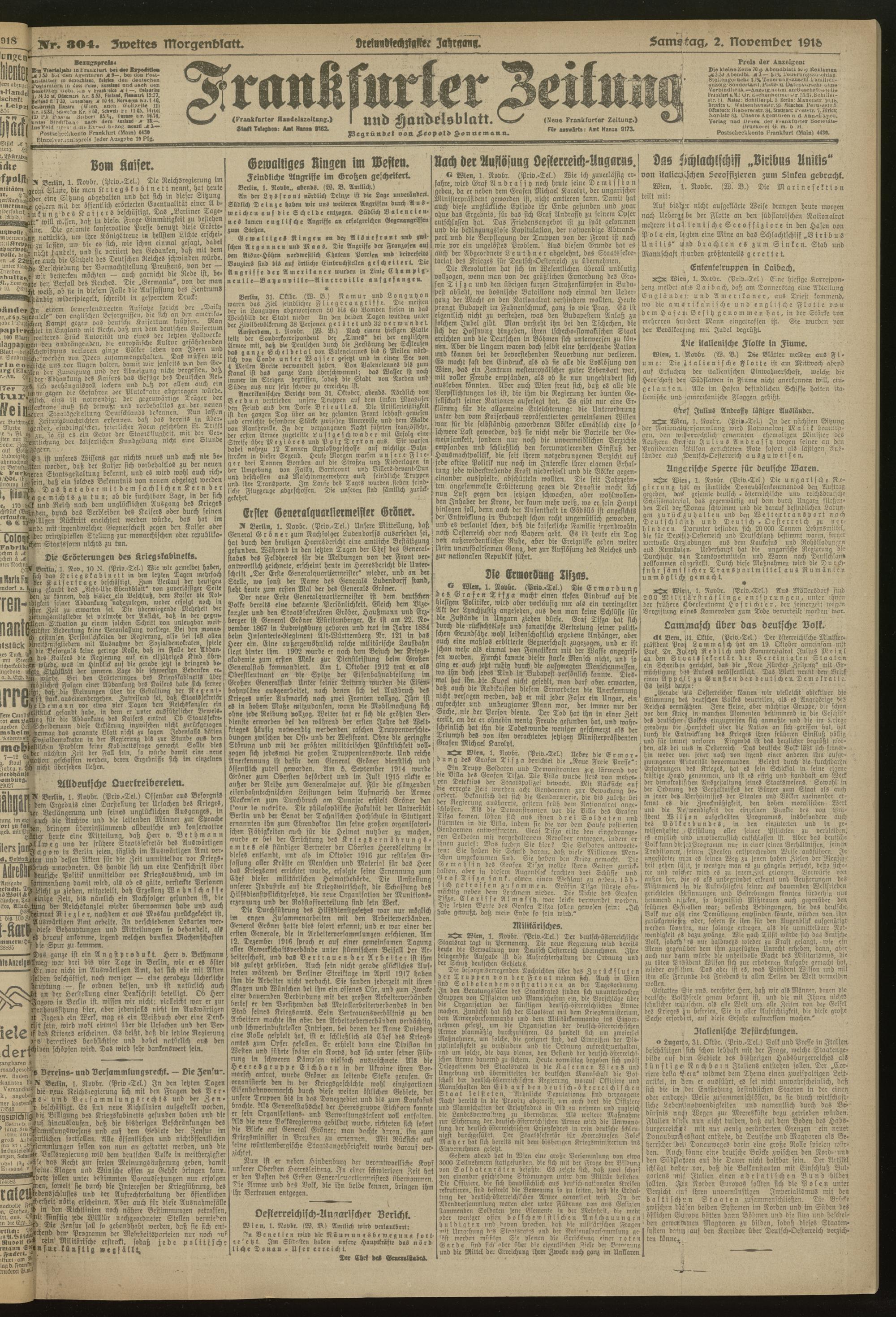 02.11.1918 = Nr. 304. Zweites Morgenblatt