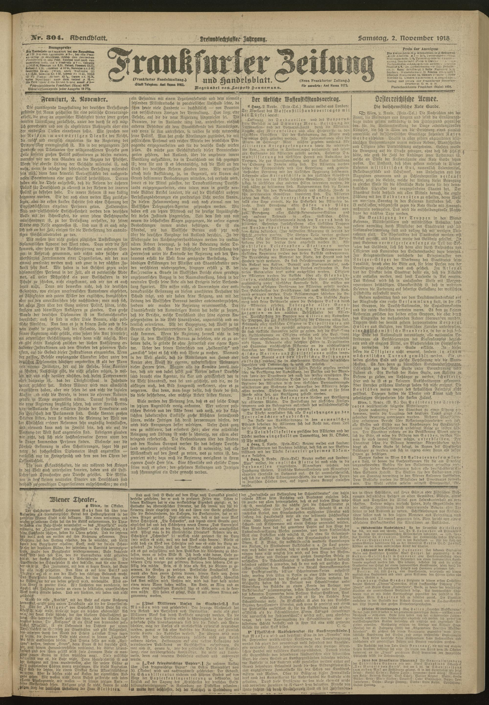 02.11.1918 = Nr. 304. Abendblatt