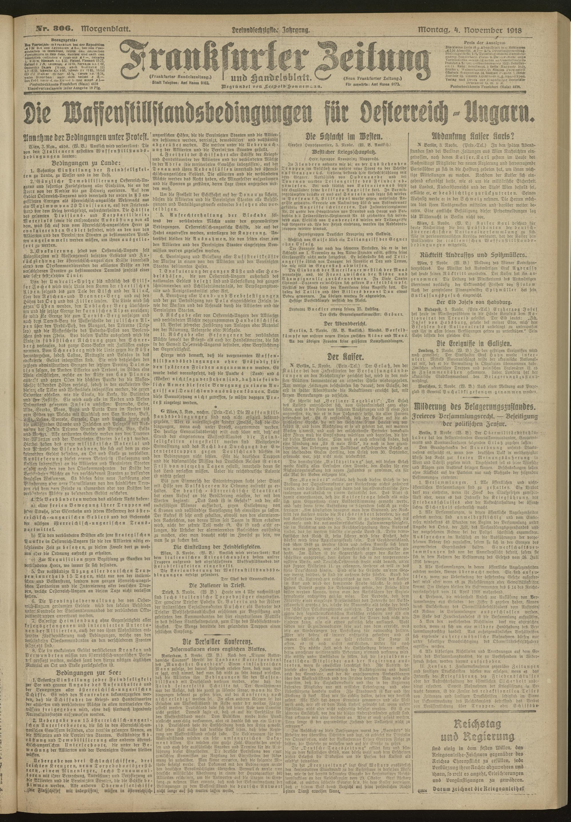 04.11.1918 = Nr. 306. Morgenblatt
