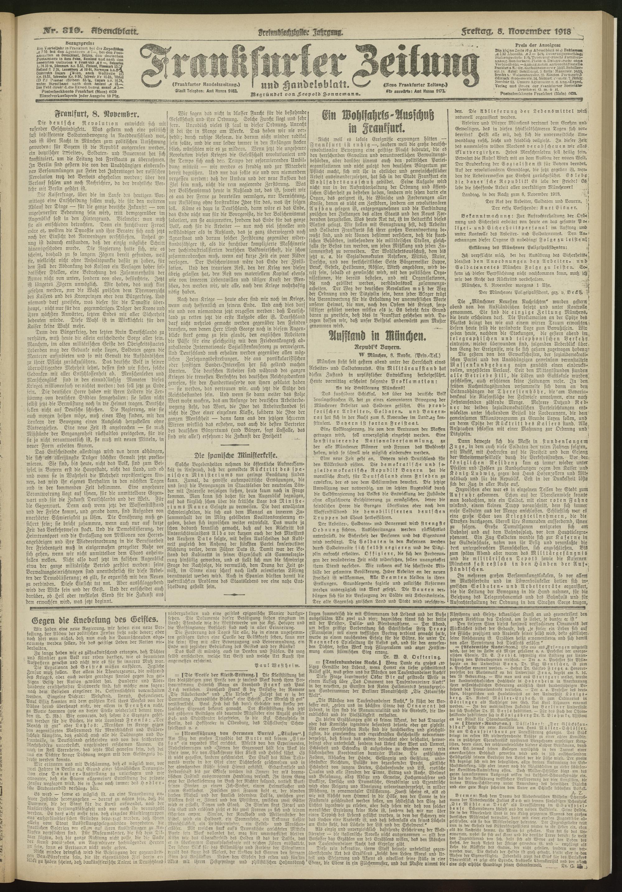 08.11.1918 = Nr. 310. Abendblatt