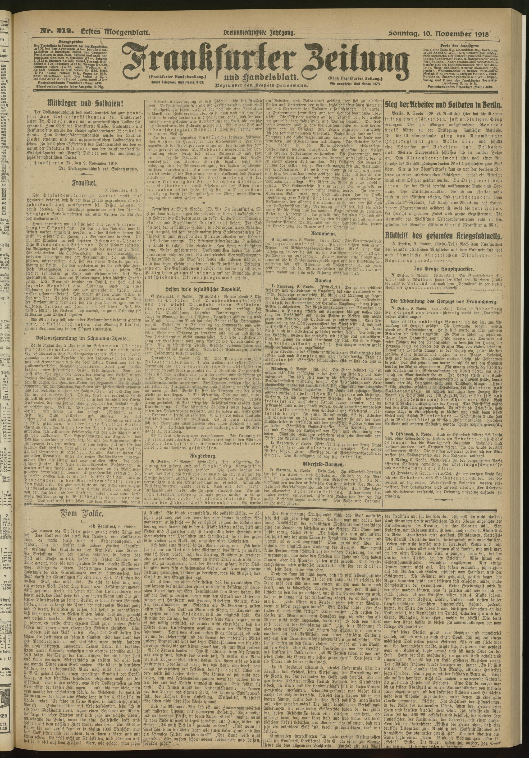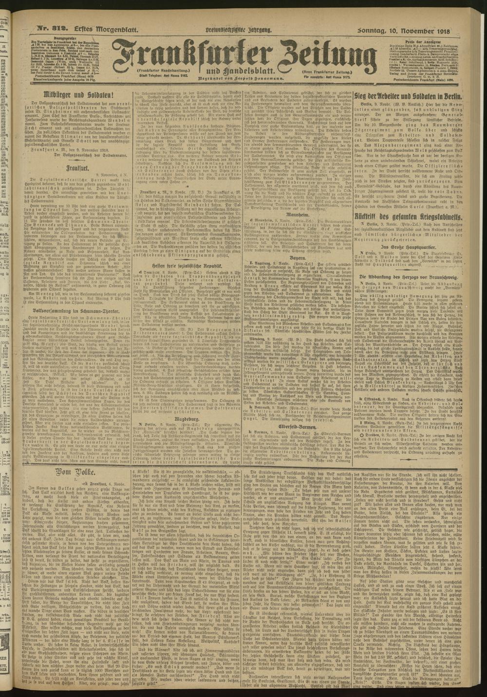 10.11.1918 = Nr. 312. Erstes Morgenblatt