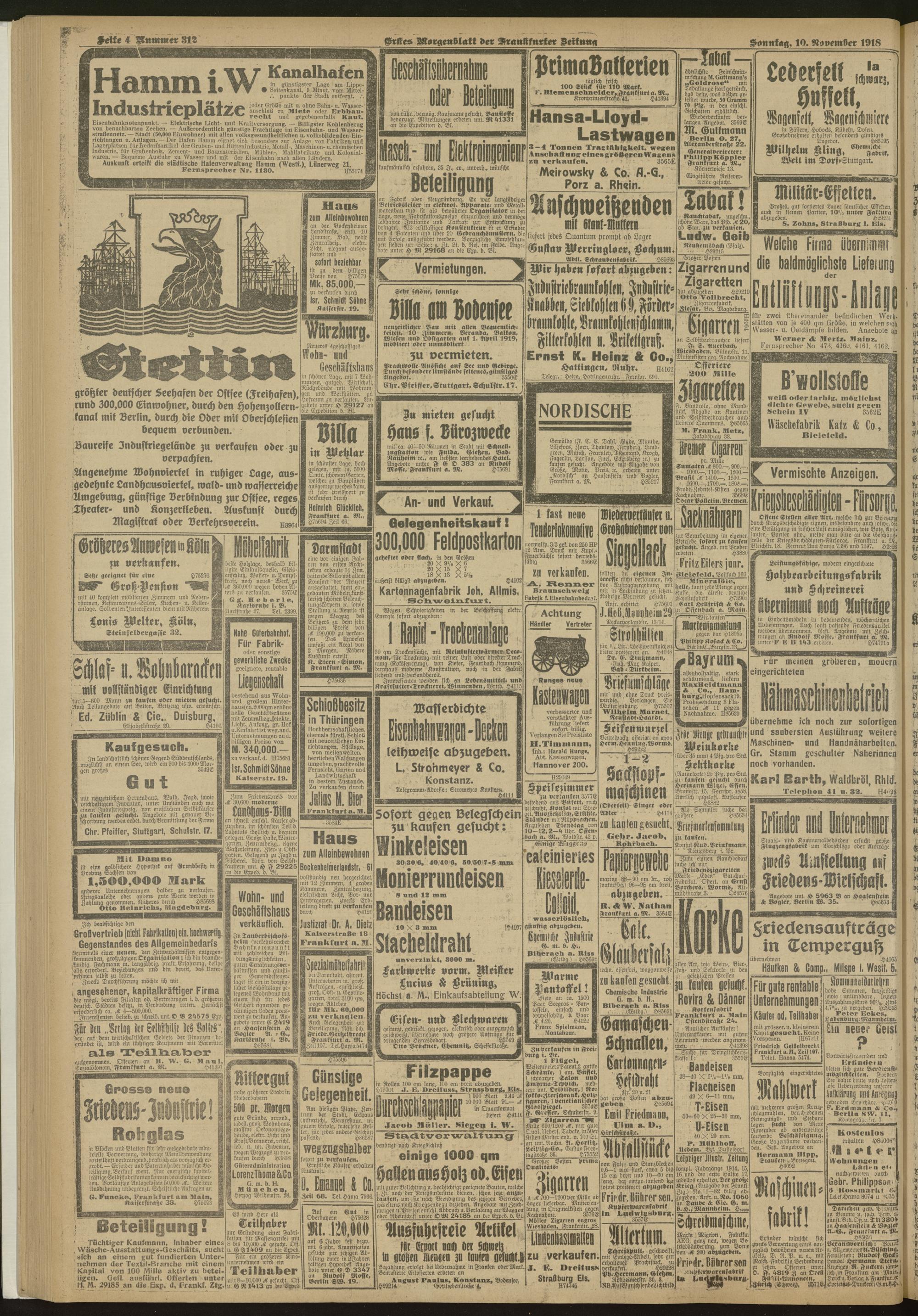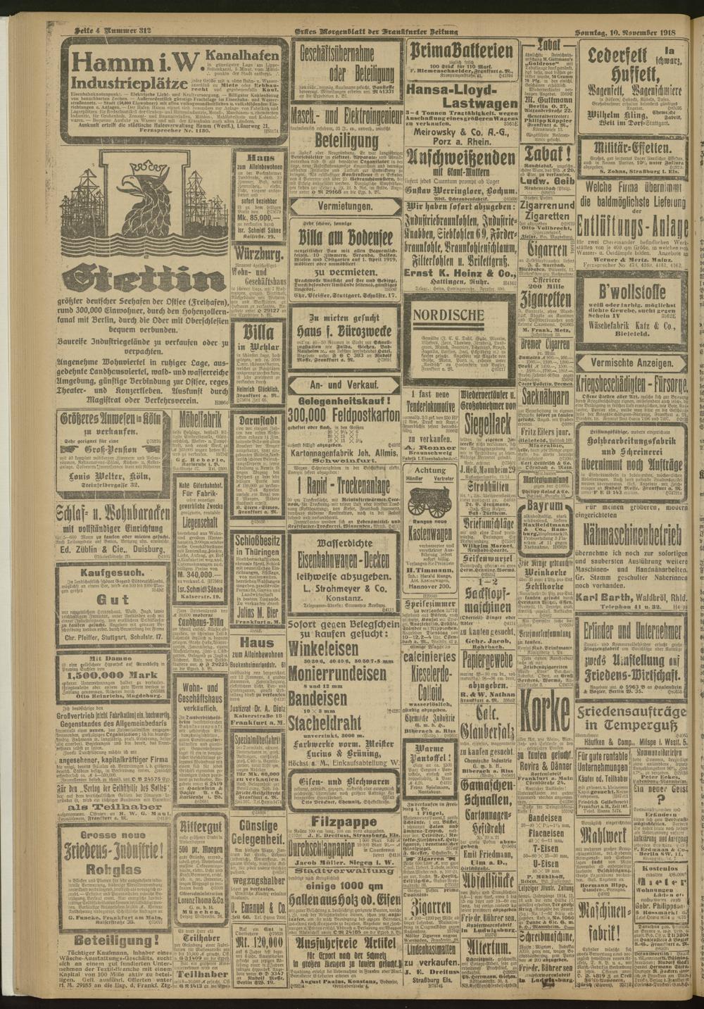 10.11.1918 = Nr. 312. Erstes Morgenblatt