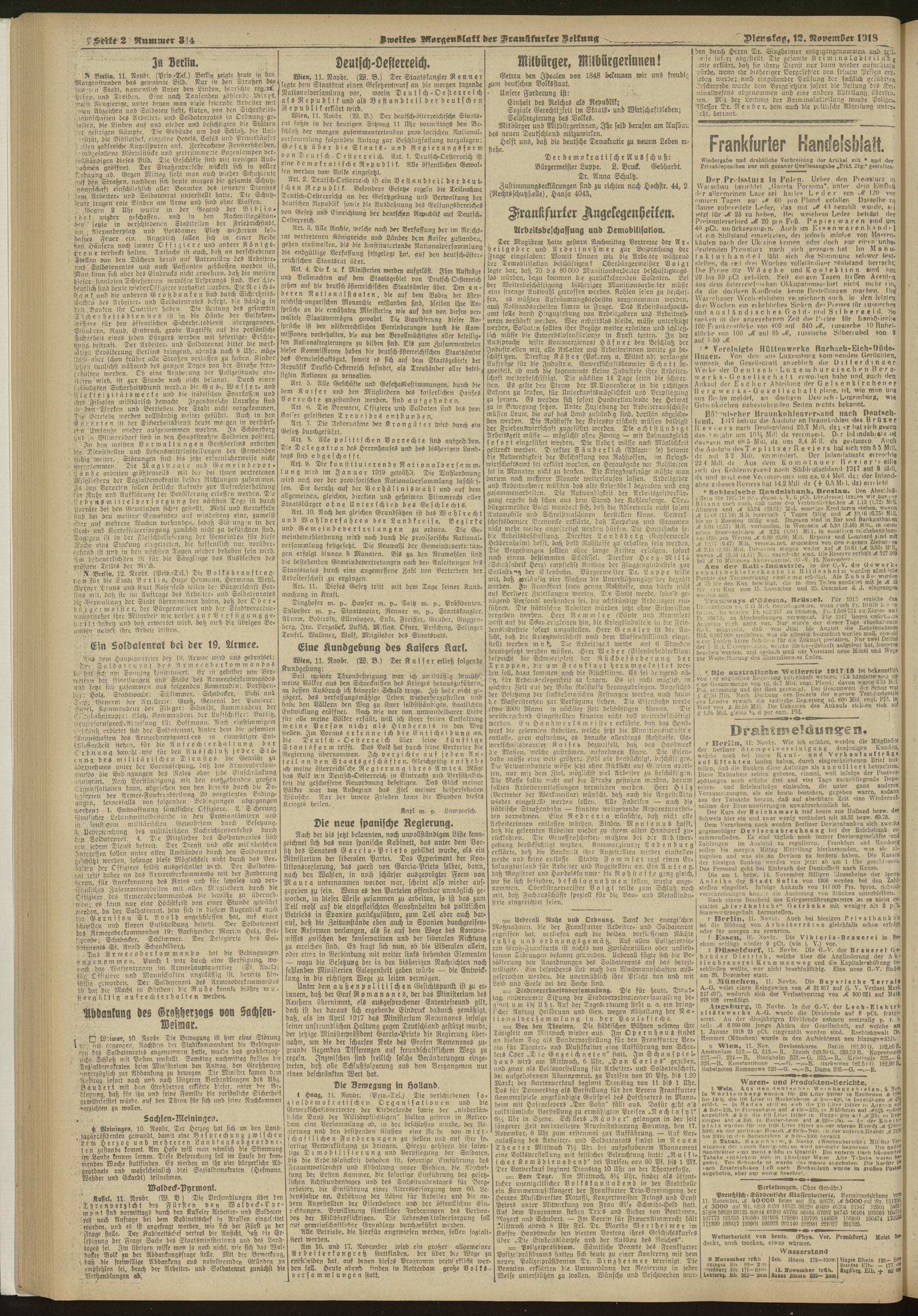 12.11.1918 = Nr. 314. Zweites Morgenblatt