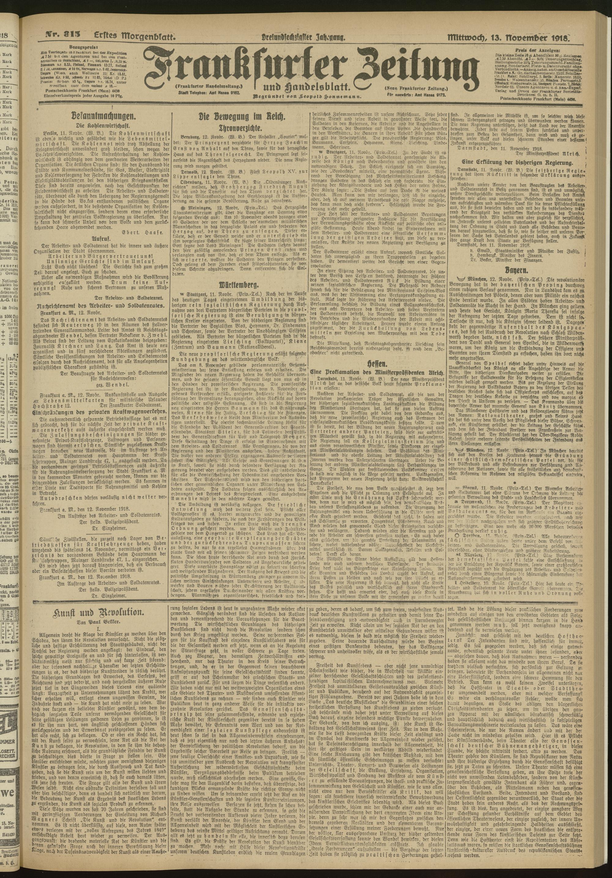13.11.1918 = Nr. 315. Erstes Morgenblatt