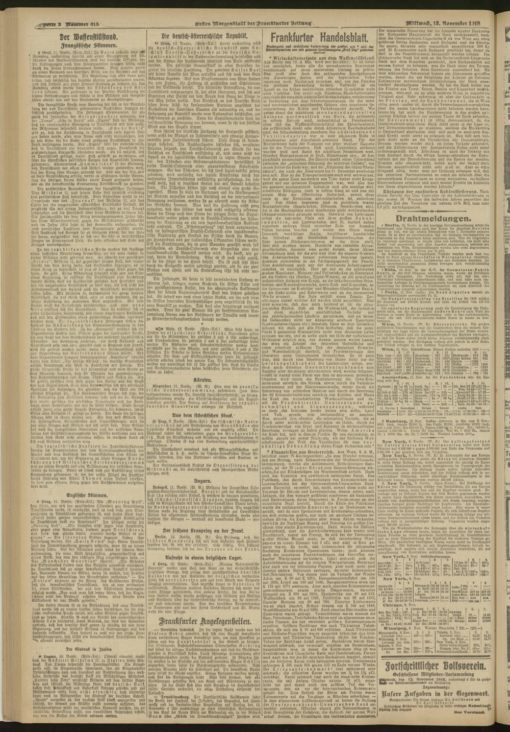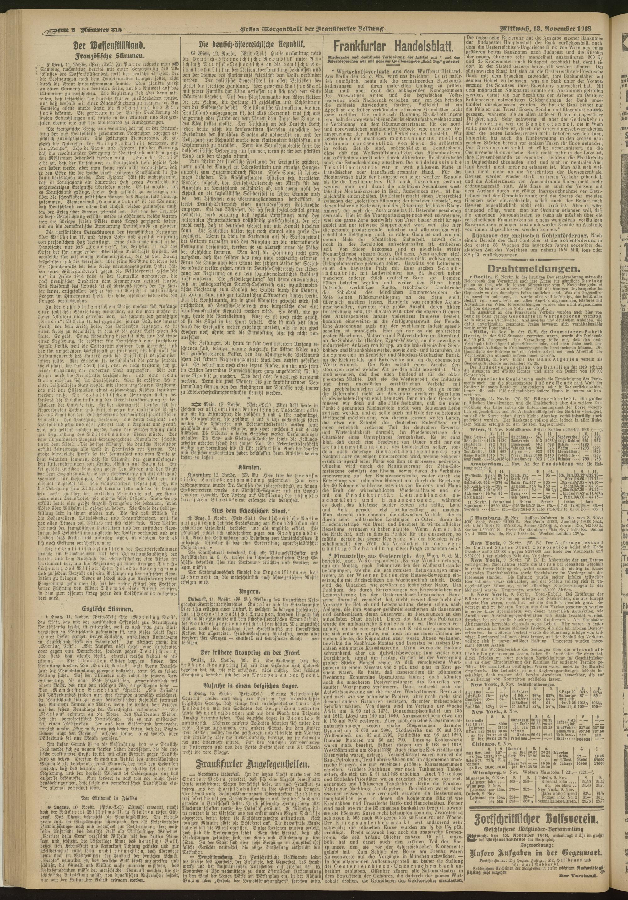 13.11.1918 = Nr. 315. Erstes Morgenblatt