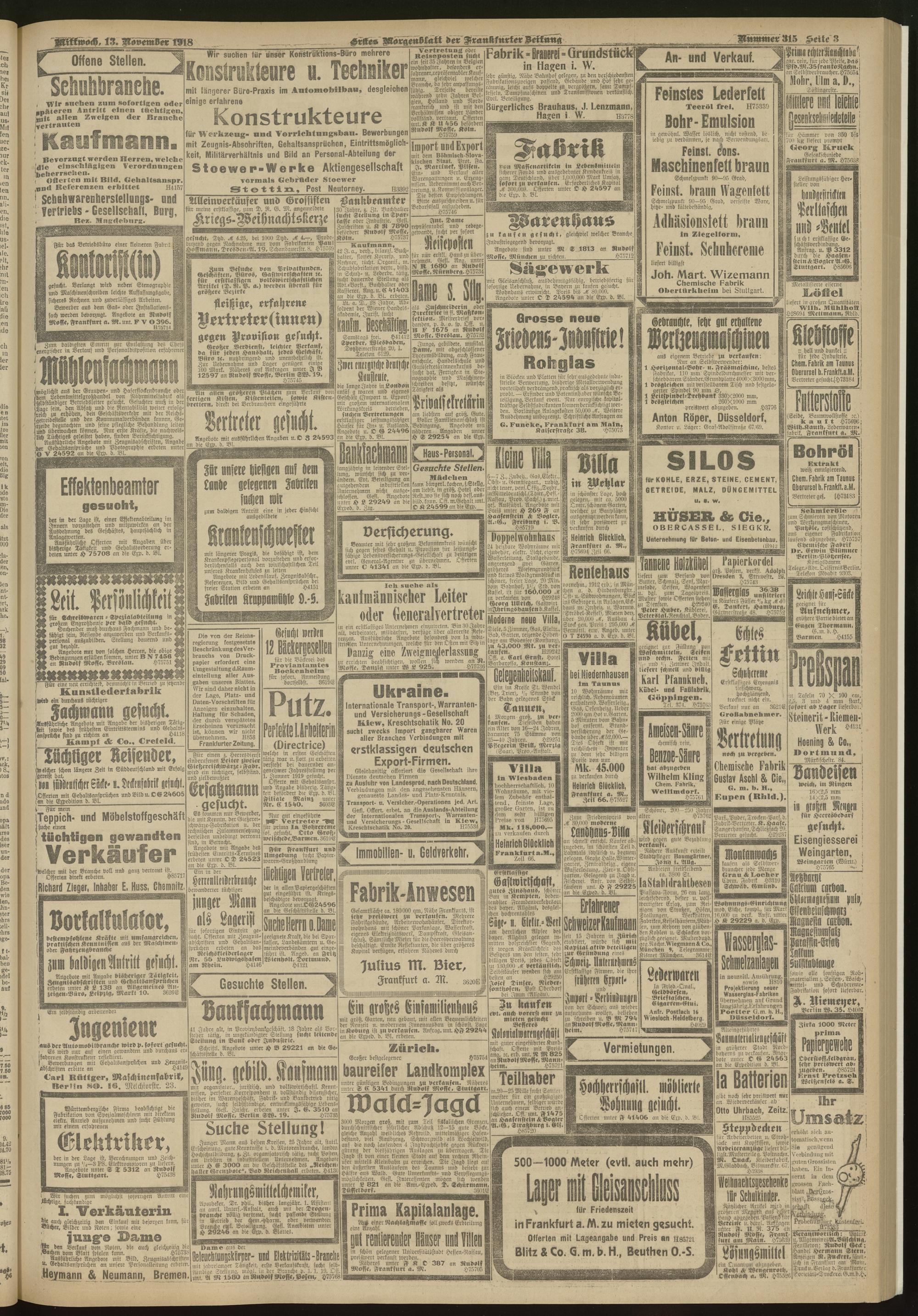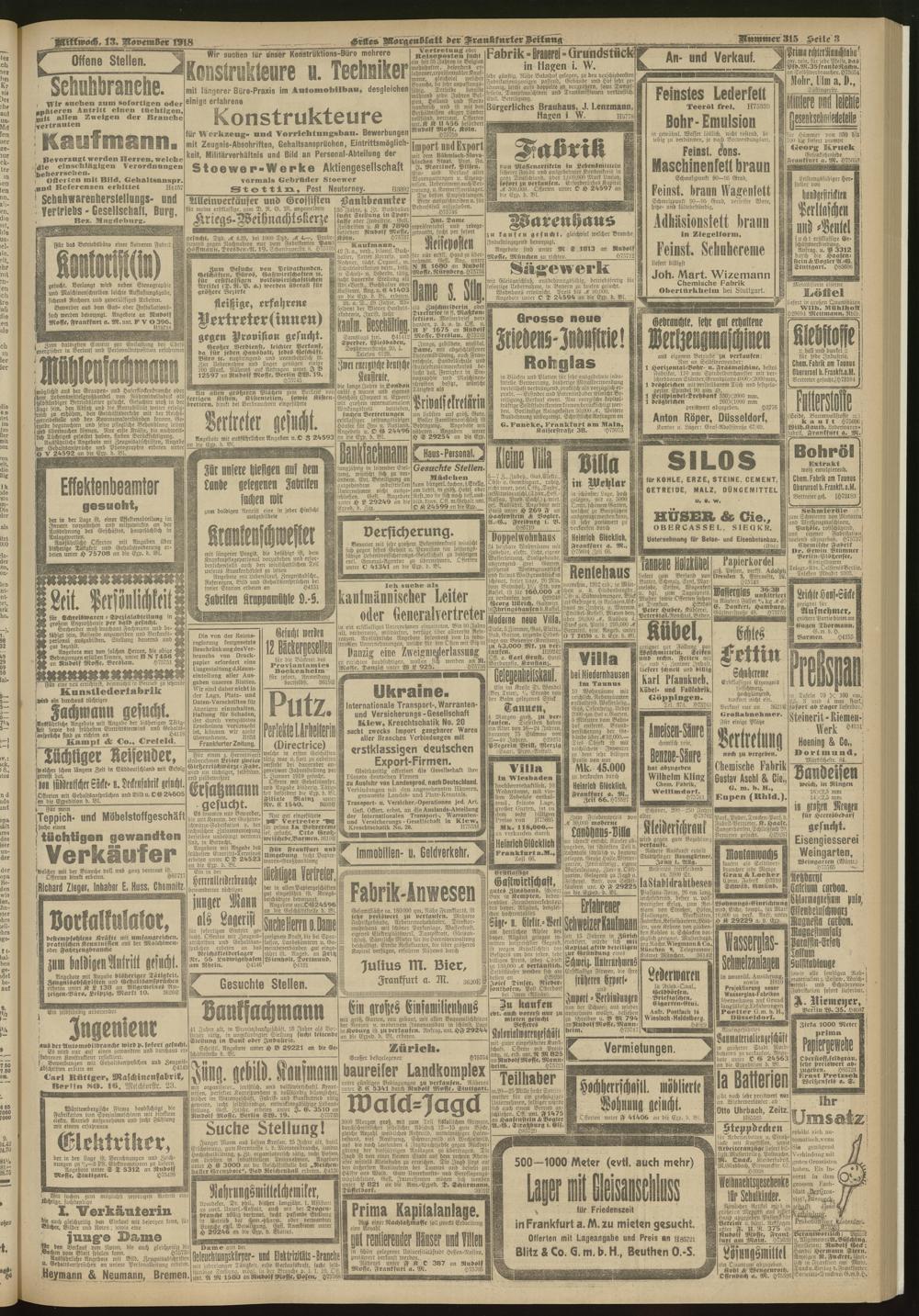 13.11.1918 = Nr. 315. Erstes Morgenblatt
