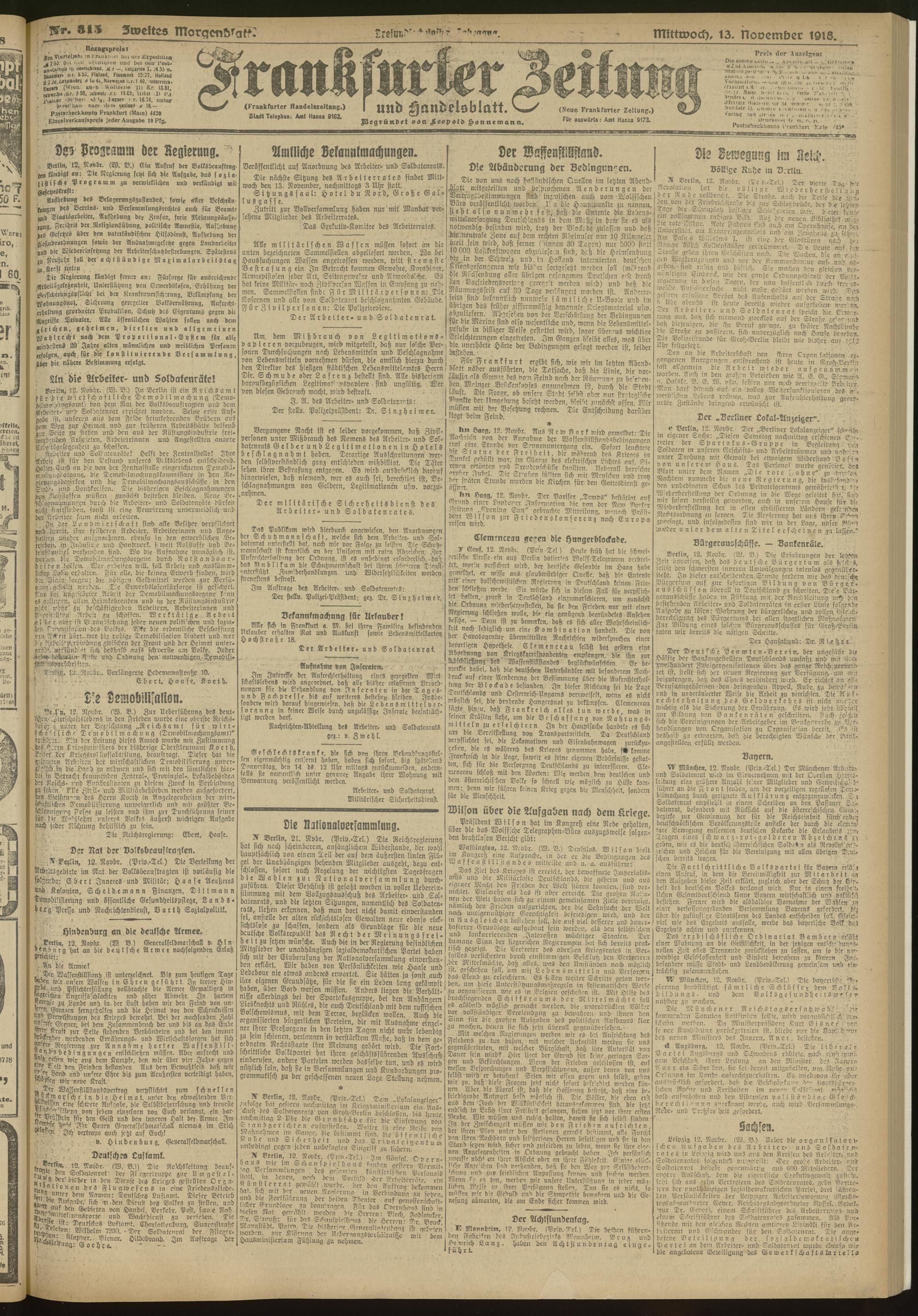 13.11.1918 = Nr. 315. Zweites Morgenblatt