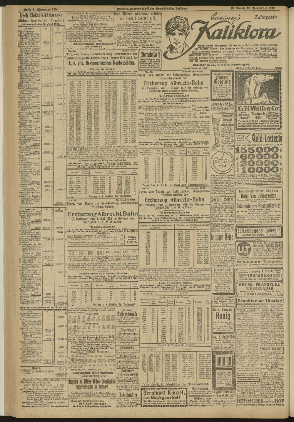 13.11.1918 = Nr. 315. Zweites Morgenblatt