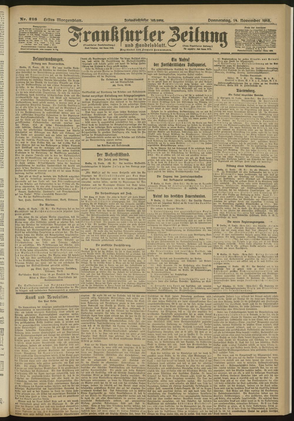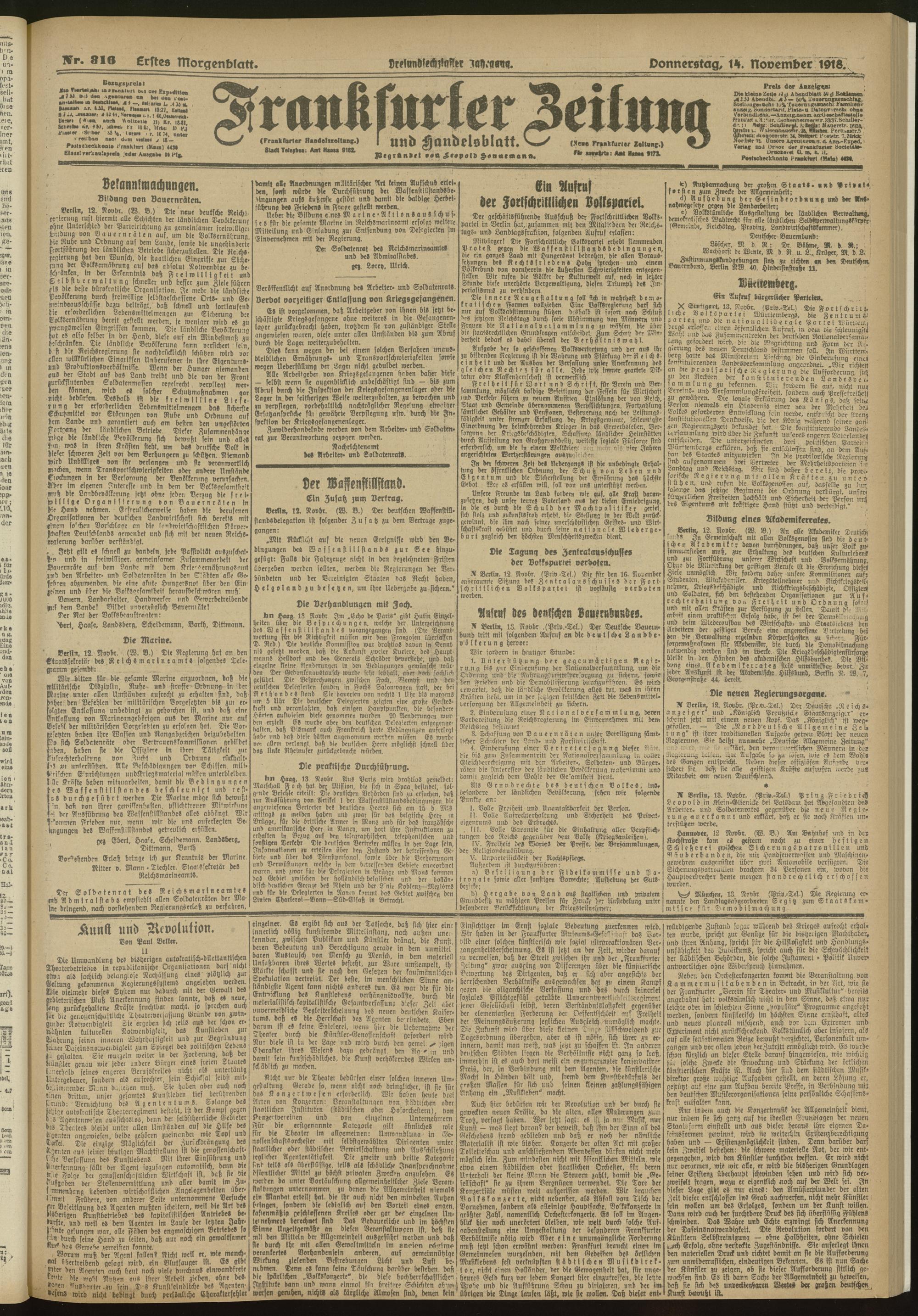 14.11.1918 = Nr. 316. Erstes Morgenblatt