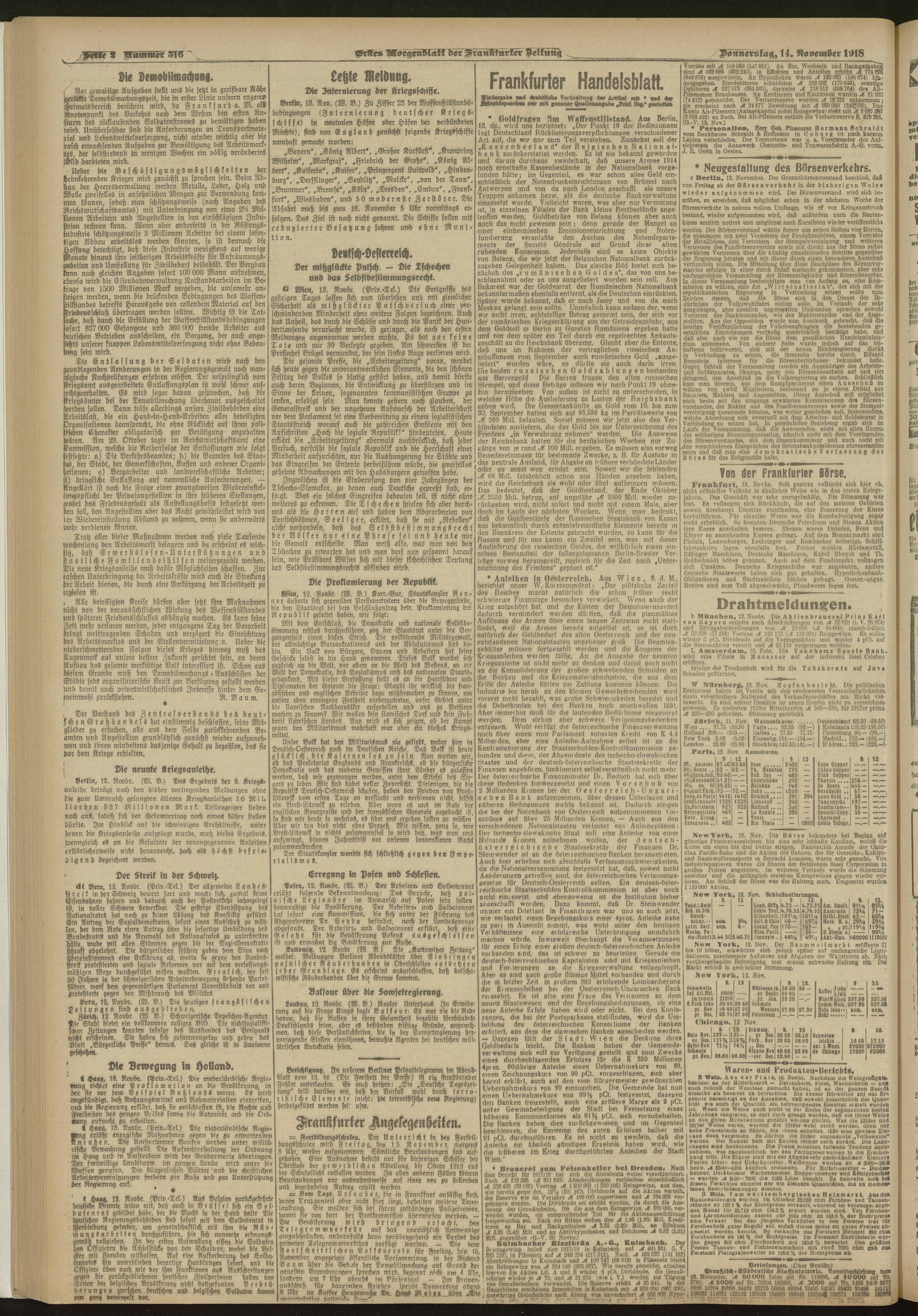 14.11.1918 = Nr. 316. Erstes Morgenblatt