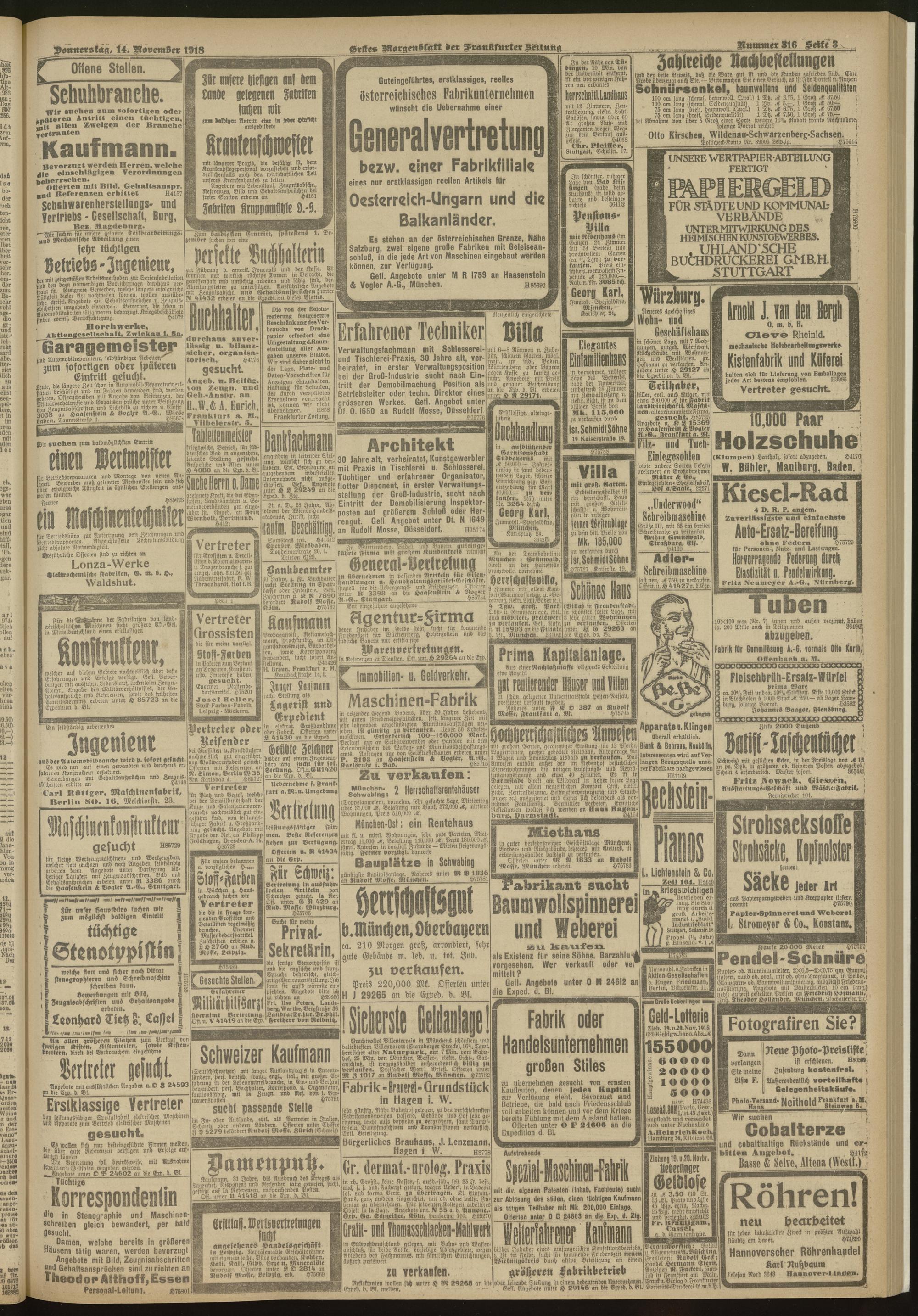 14.11.1918 = Nr. 316. Erstes Morgenblatt