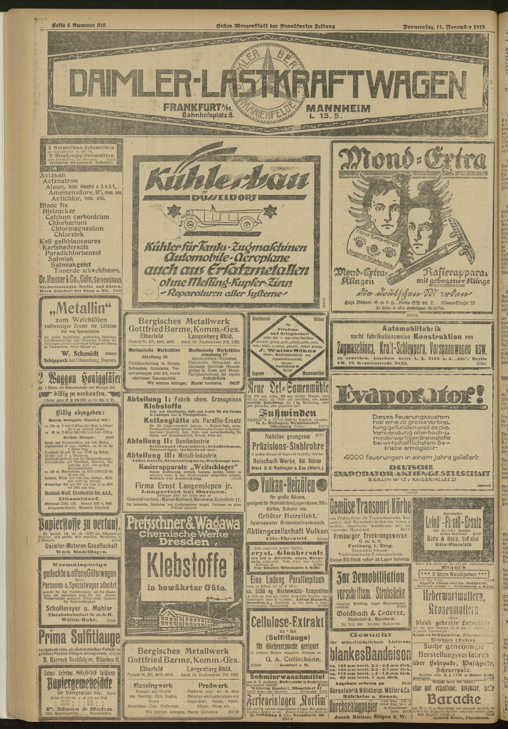 14.11.1918 = Nr. 316. Erstes Morgenblatt