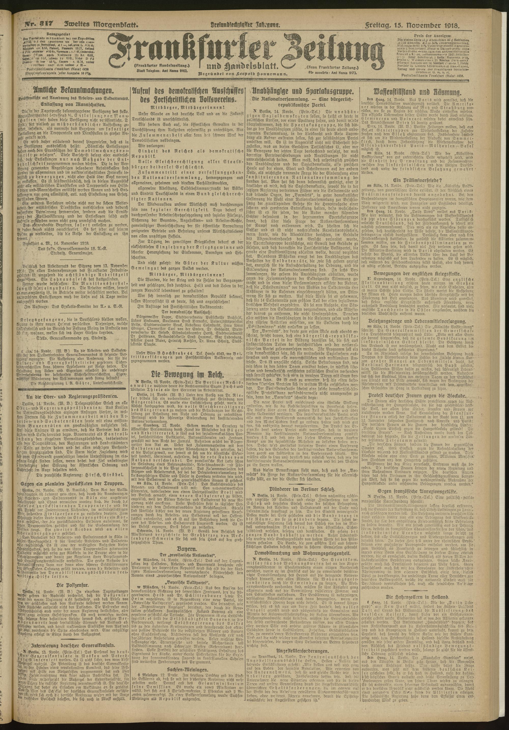 15.11.1918 = Nr. 317. Zweites Morgenblatt