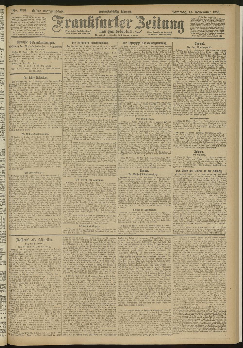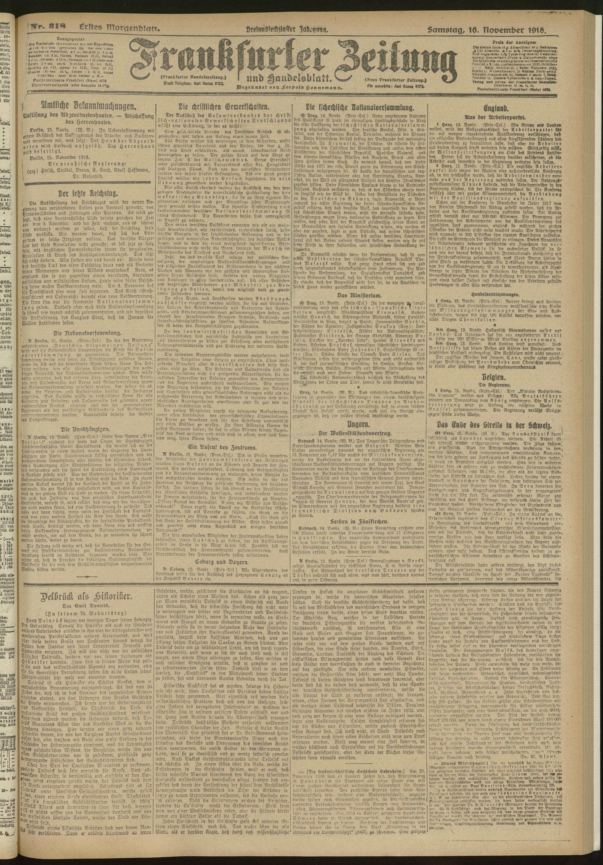 16.11.1918 = Nr. 318. Erstes Morgenblatt