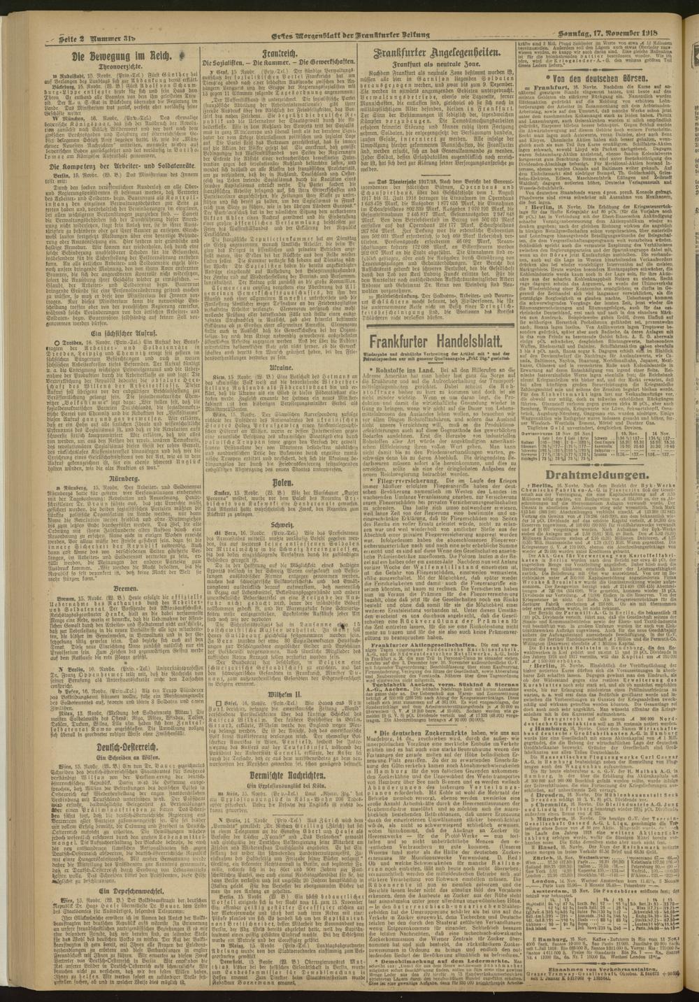 Frankfurter Zeitung und Handelsblatt. 18...