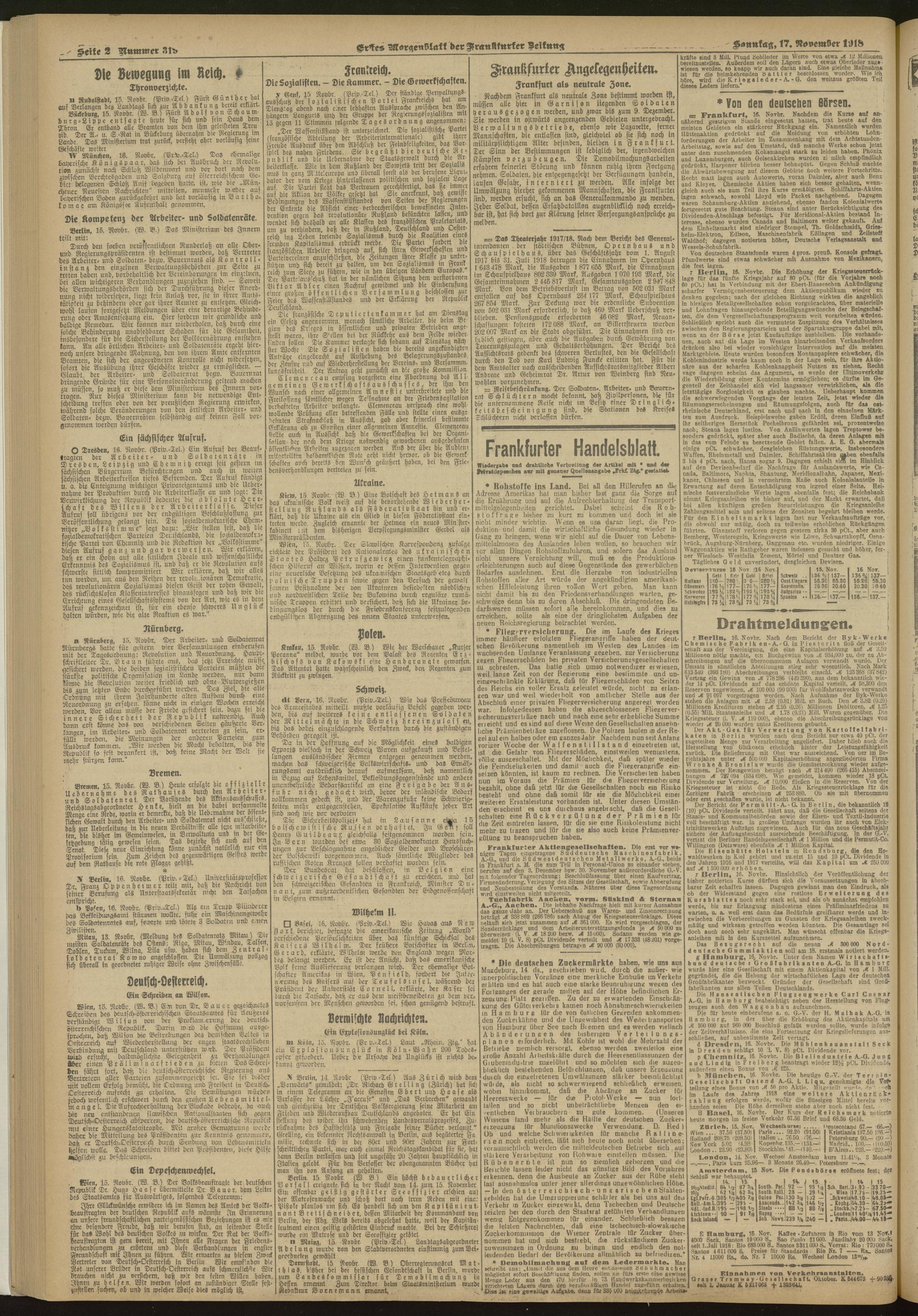 17.11.1918 = Nr. 319. Erstes Morgenblatt