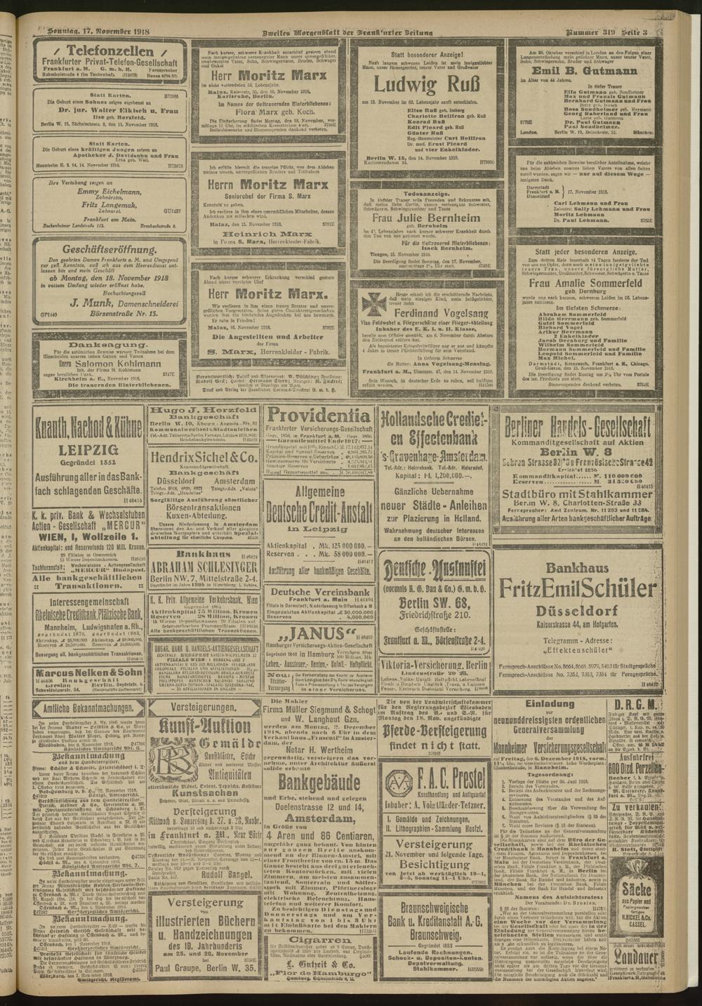 17.11.1918 = Nr. 319. Zweites Morgenblatt