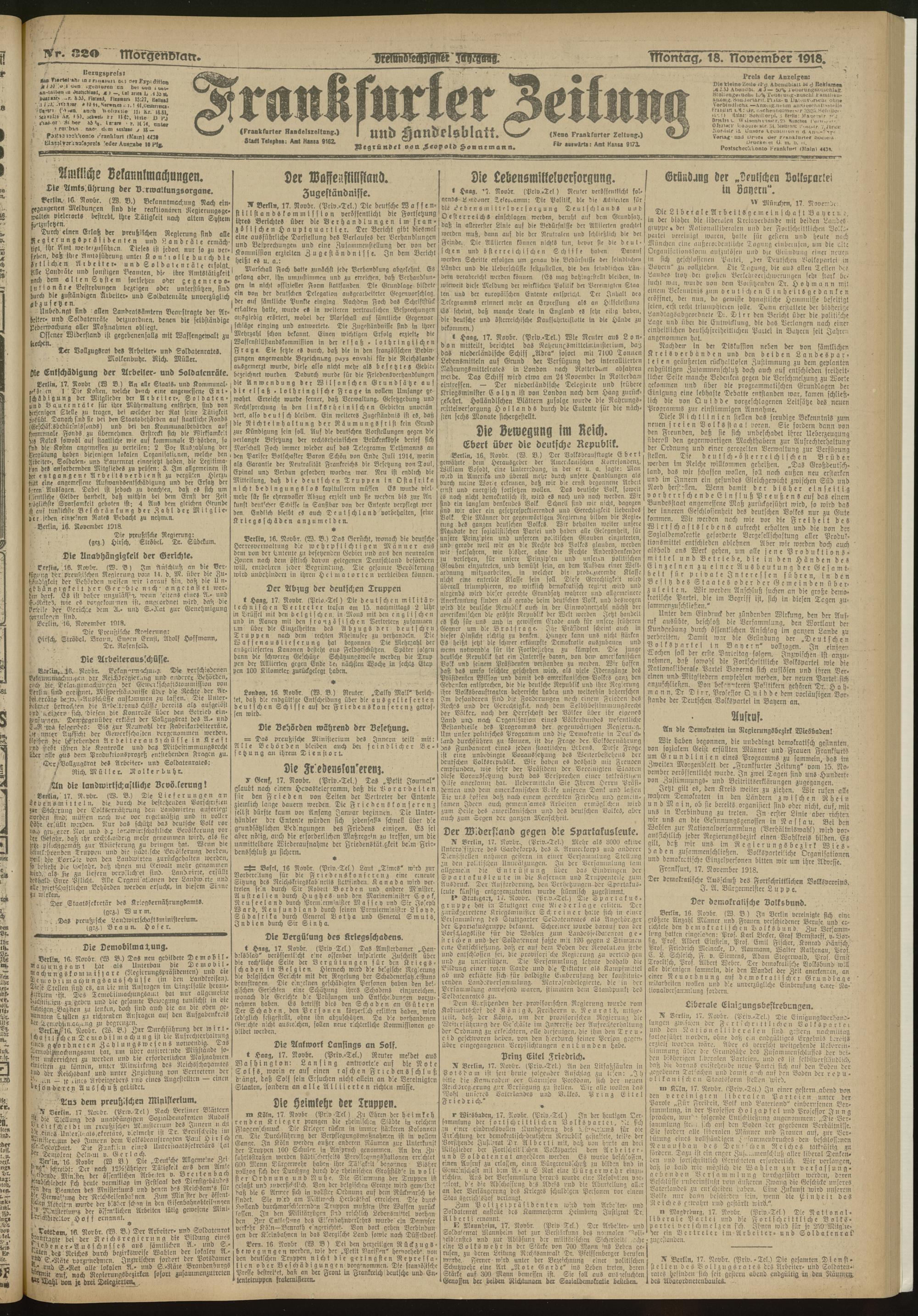18.11.1918 = Nr. 320. Morgenblatt